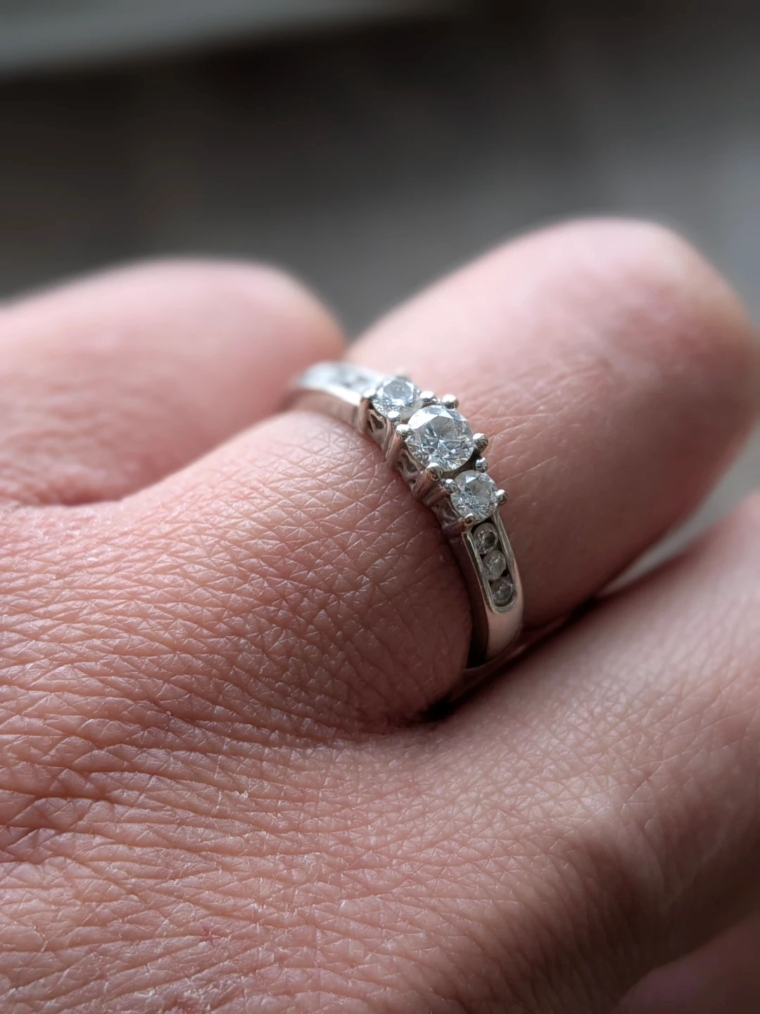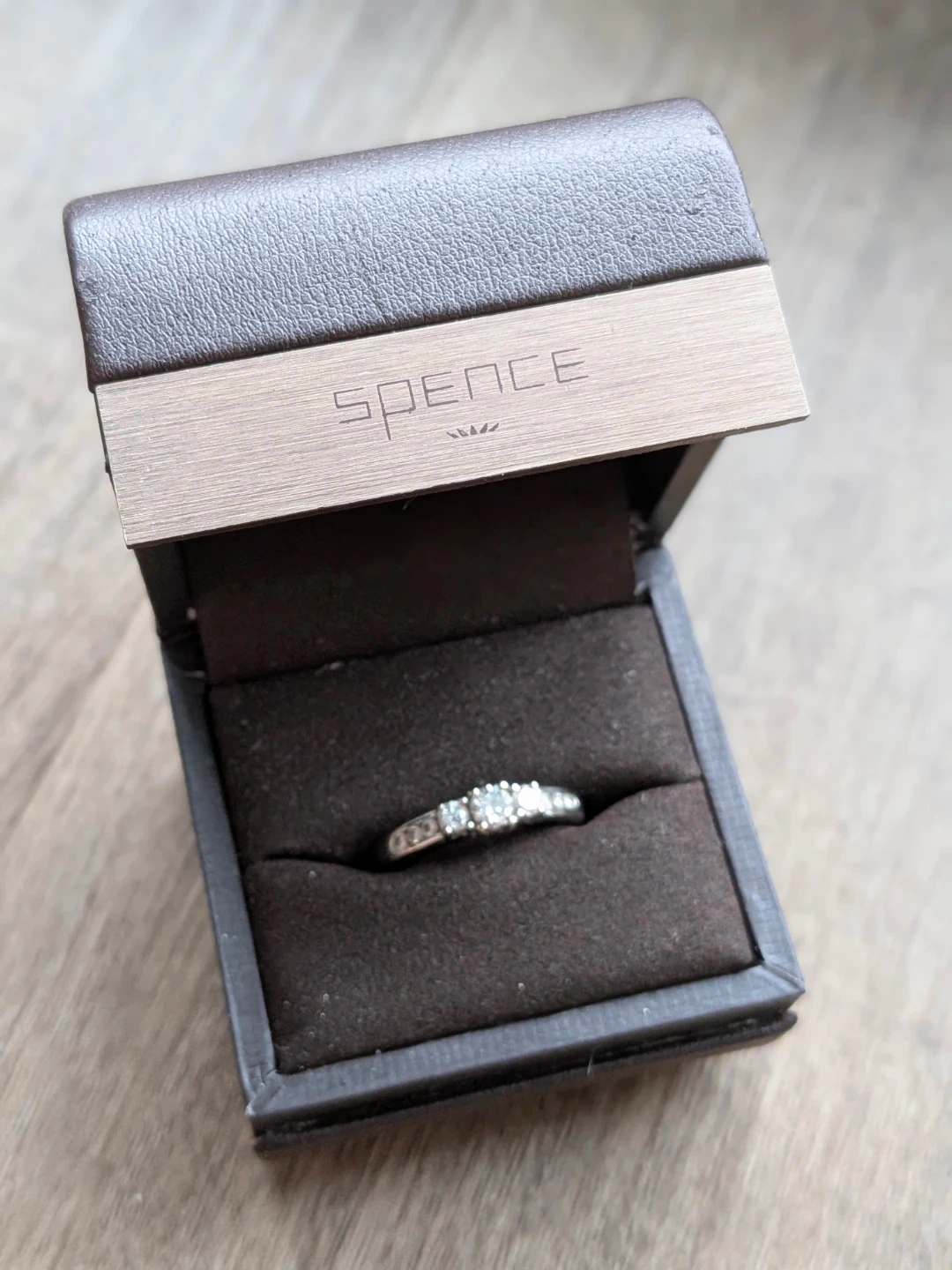 Buy & SellSpence Sterling Silver Diamond RingSpence Sterling Silver Diamond Ring$359This Spence ring features three centre stones with smaller stones accenting the band. Comes with original Spence box. 14K white gold.ConditionGoodWHERE TO MEETBrentwoodView MapSELLERverifiedCarmen MBrentwood1024 reviews1 chats·0 favorites·24 viewsSEND CHAT TO SELLERHi Carmen M! I’m interested in your listing.Hi Carmen M! I’m interested in your listing.Get the Karrot app to chatSign In to chat