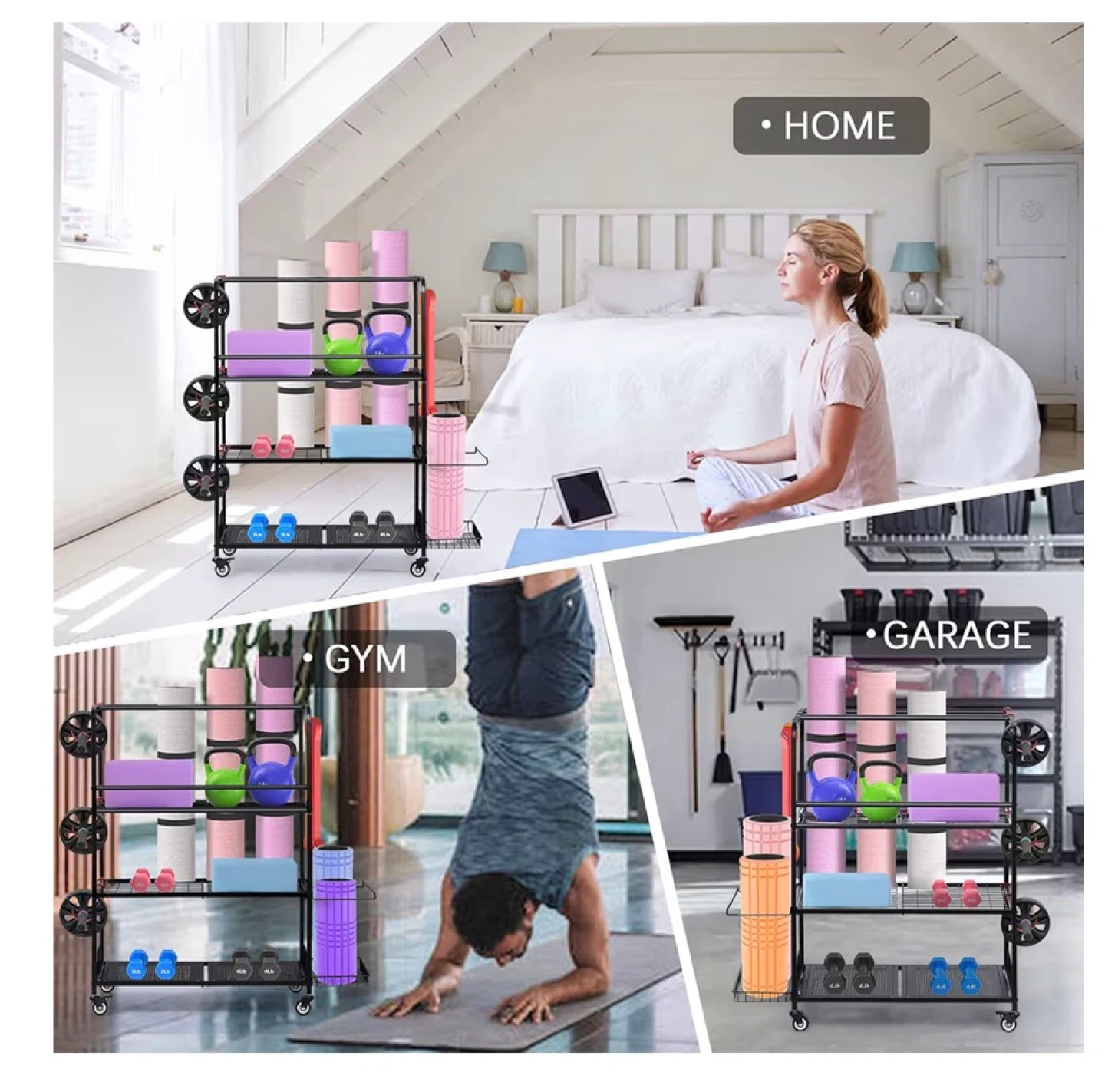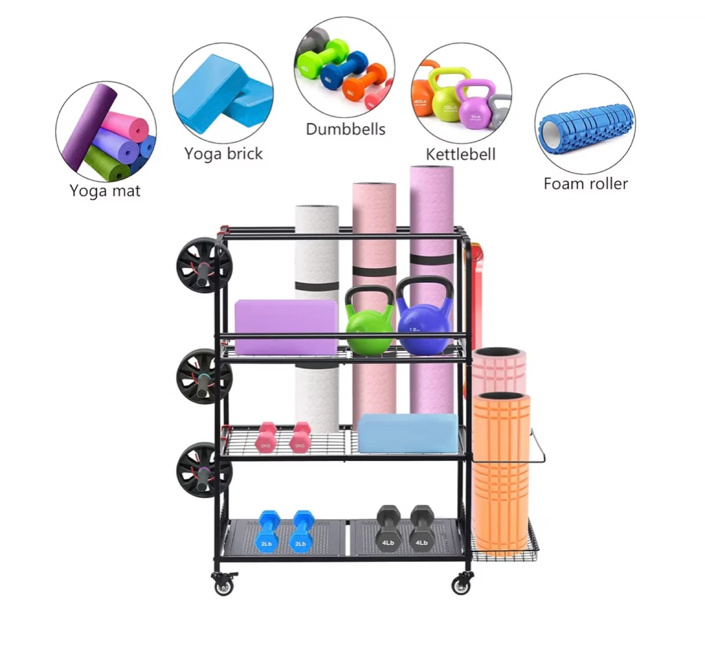 Home Gym Storage Rack for Yoga Mats, Dumbbells, and Kettlebells