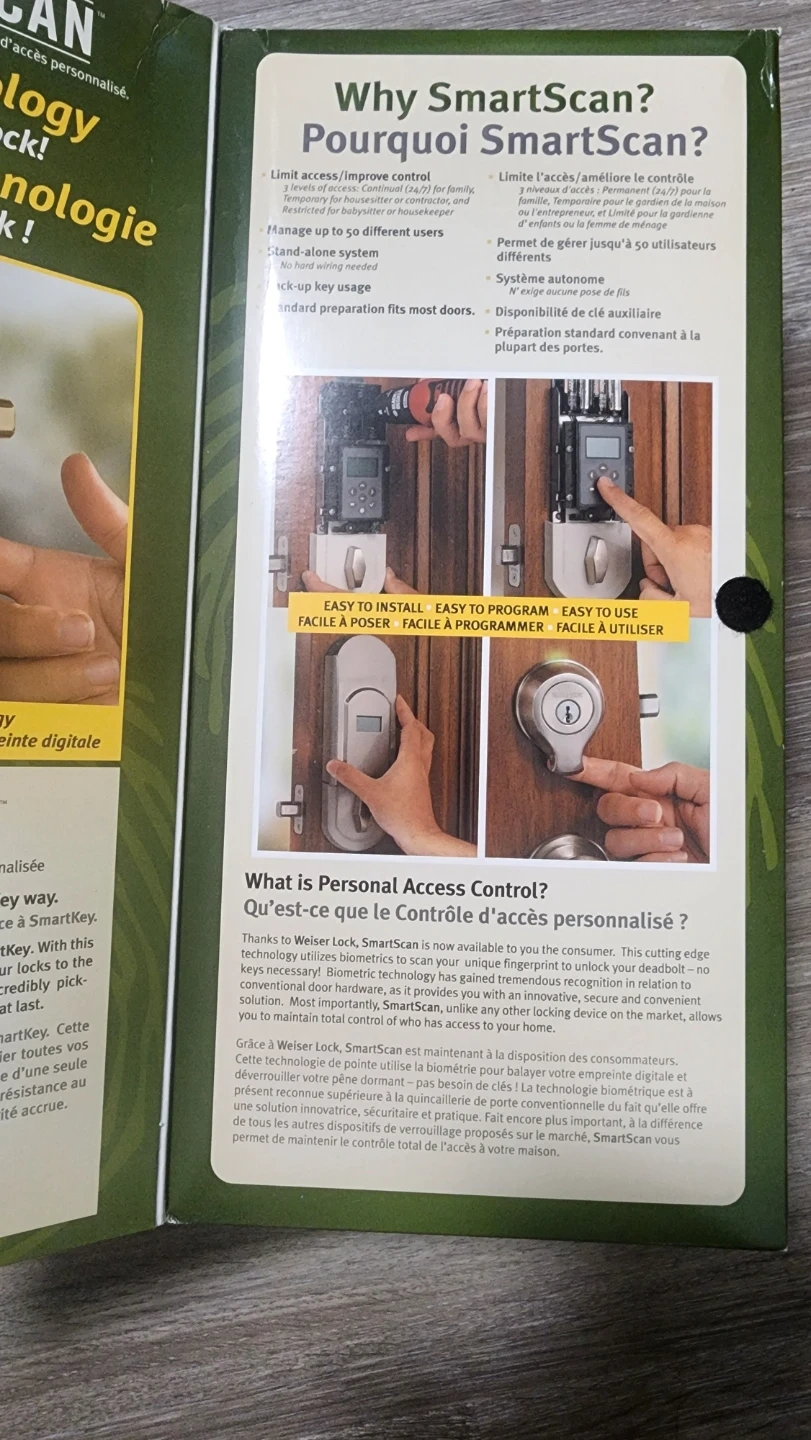 Selling a New Weiser Lock with Smartscan technology in a Venetian Bronze finish. It offers personalized access control using biometric fingerprint scan technology. Also includes key.