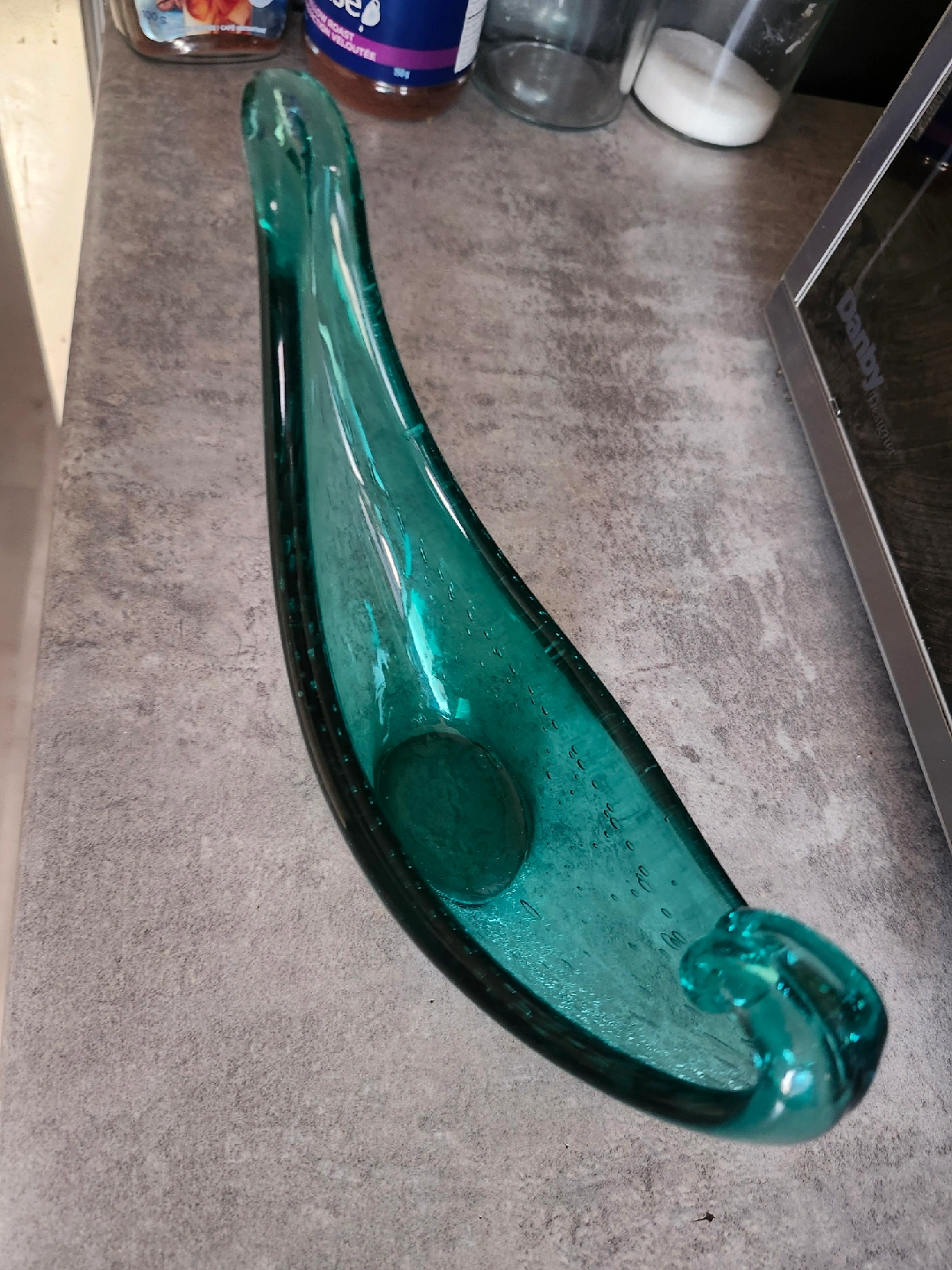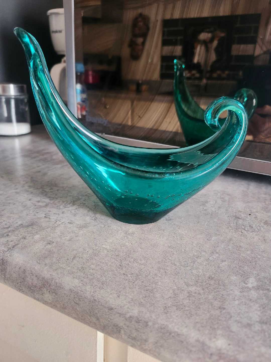 Beautiful teal glass bowl, perfect as a decorative piece or for holding small items. It's in great condition and ready to add a pop of colour to your space