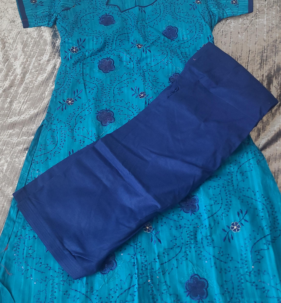 75Selling a beautiful teal kurti with intricate embroidery and a matching pair of blue pants. The fabric feels comfortable and breathable, perfect for everyday wear. It's in great condition and ready for a new home!