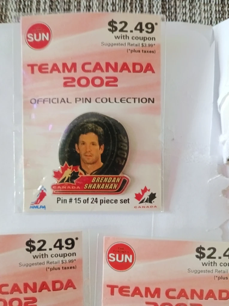 76I have a collection of Team Canada 2002 official pins for sale! These pins are from The Toronto Sun and feature different players. Each pin was originally priced at $2.49 with a coupon.