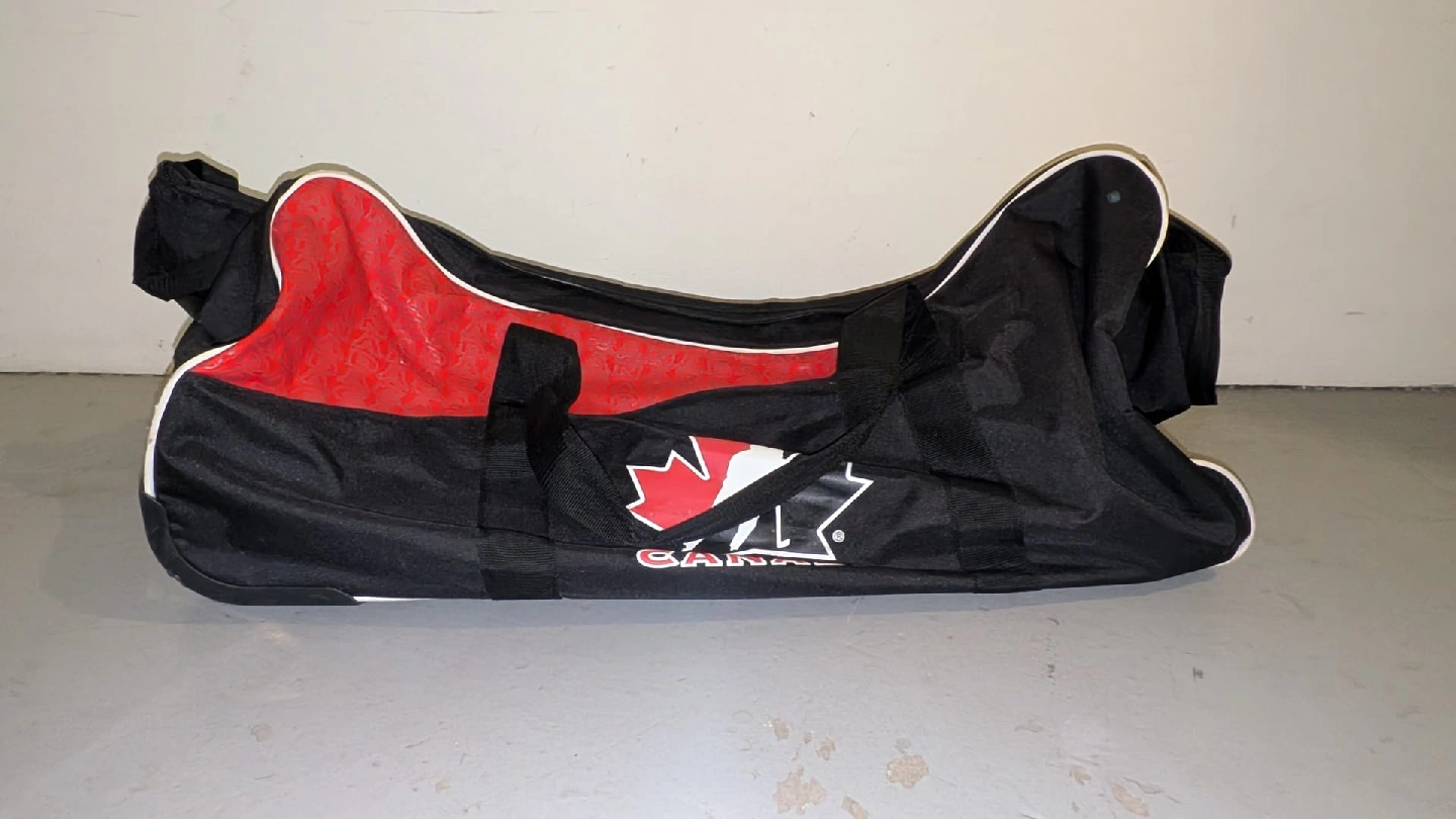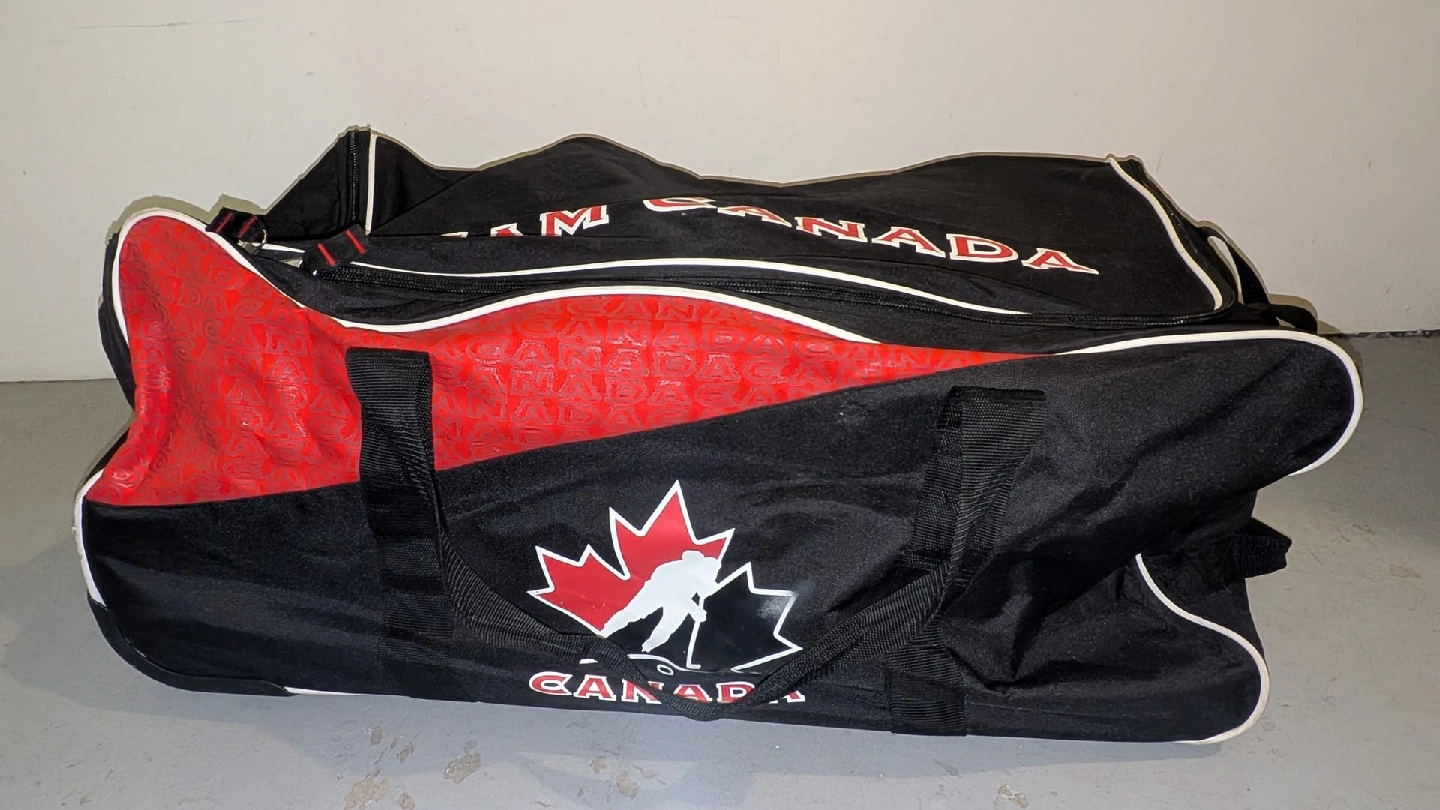 Selling a Team Canada wheeled hockey bag! It's black and red with the Team Canada logo. Perfect for carrying all your hockey gear to the rink