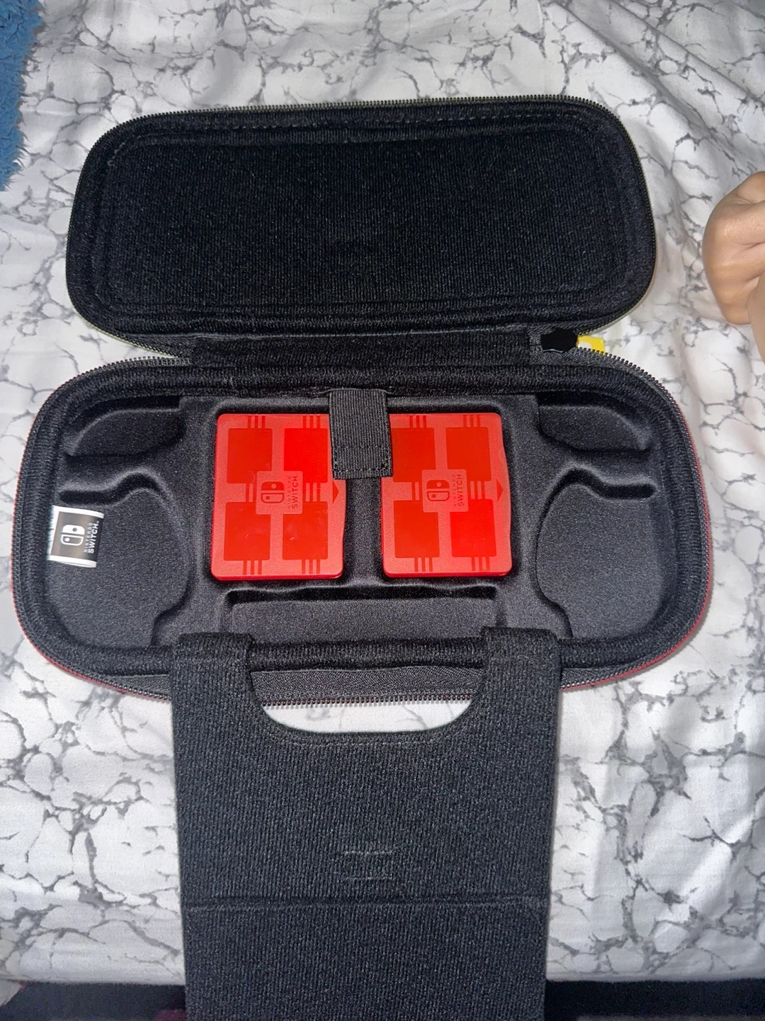 Nintendo Switch Lite case featuring a Super Mario design! It's in great condition and ready to protect your console. Perfect for any Super Mario fan! It has little little cases inside for the games