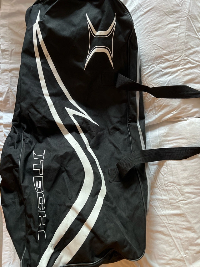 101This Tech Hockey Bag is great for carrying all of your gear to the rink! It has some wear and tear, but it is still fully functional. This bag will keep your equipment safe and dry. If the ad is up, it's available!
