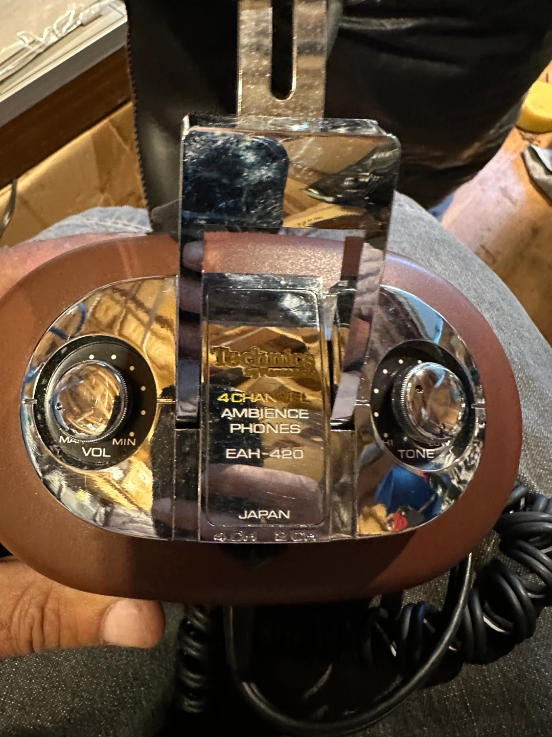 Selling a pair of Technics by Panasonic 4-Channel Ambience Phones, model EAH-420. These headphones have a cool vintage look with volume and tone controls right on the earcups. A unique piece for any audio enthusiast!