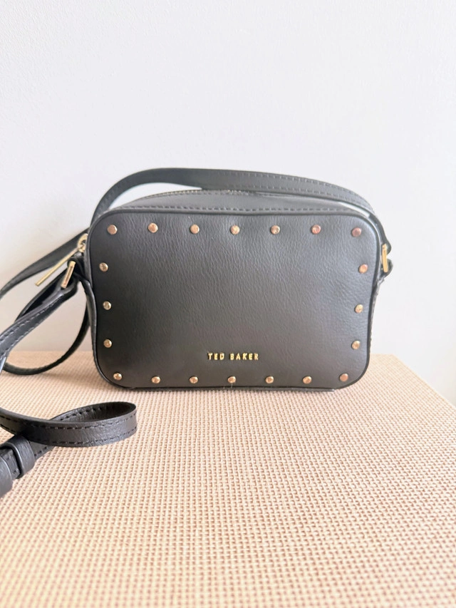 This is a stylish Ted Baker black crossbody handbag, perfect for carrying your essentials in a chic manner. It is in used but good condition. I’m selling lots of great items that need to go.