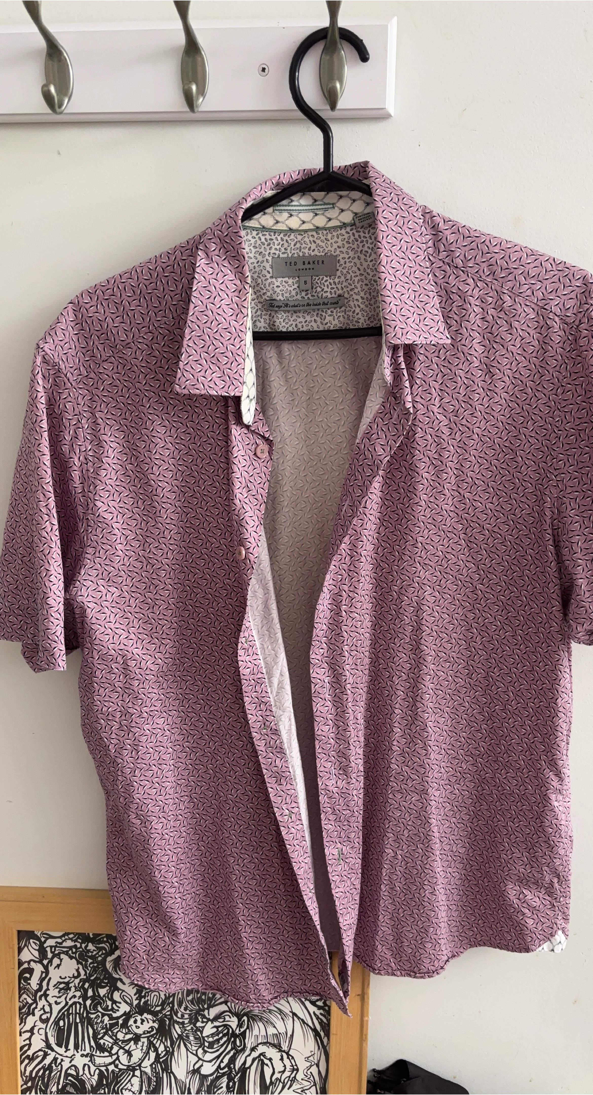 0Selling a Ted Baker London shirt in a unique pink pattern. It's a size 5 and in great condition!