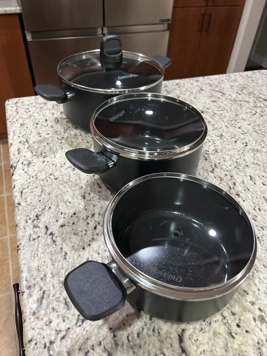 Buy & SellGreenPan Cookware Set - 3 PiecesGreenPan Cookware Set - 3 Pieces$50Selling a 3-piece GreenPan cookware set. It includes three pots with lids. There are some signs of use inside the pots.ConditionGoodWHERE TO MEETCheck LocationView MapSELLERS BLeitrim100 reviews0 chats·0 favorites·12 viewsSEND CHAT TO SELLERHi S B! I’m interested in your listing.Hi S B! I’m interested in your listing.Get the Karrot app to chatSign In to chat