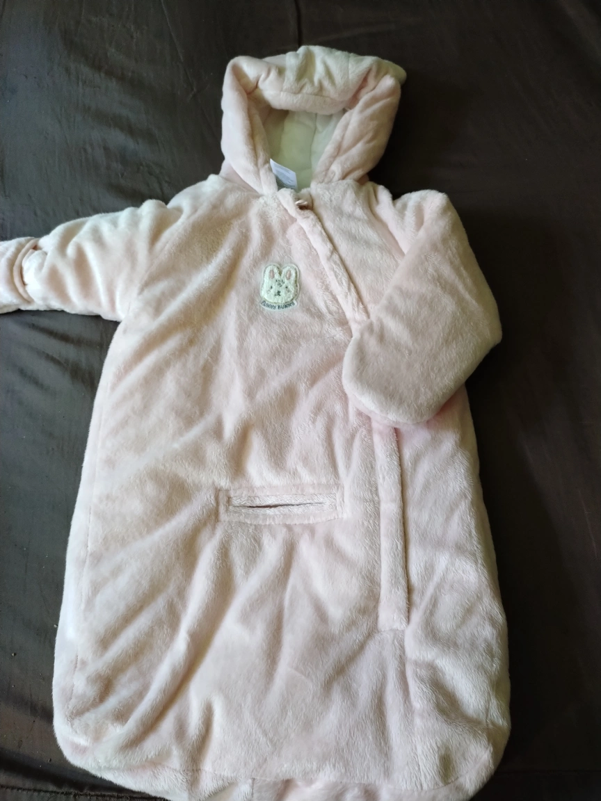 12Keep your little one cozy with this adorable Teddy Bunny baby bunting bag! It's a soft, plush, and warm outer layer, perfect for keeping baby snug on chilly days. Features a hood and cute bunny design