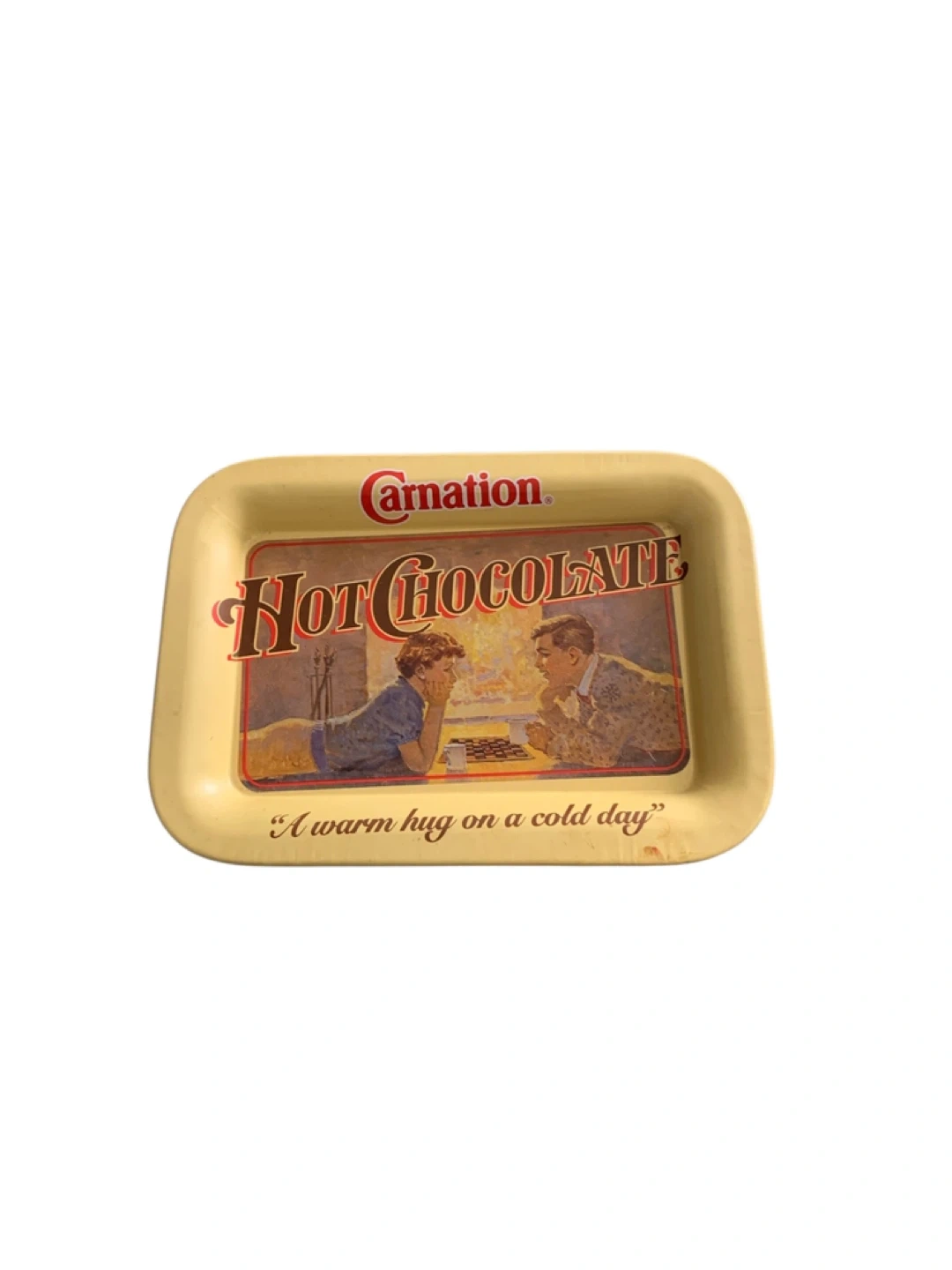 Bring home a touch of cozy nostalgia with this classic Carnation Hot Chocolate metal serving tray featuring the iconic slogan: