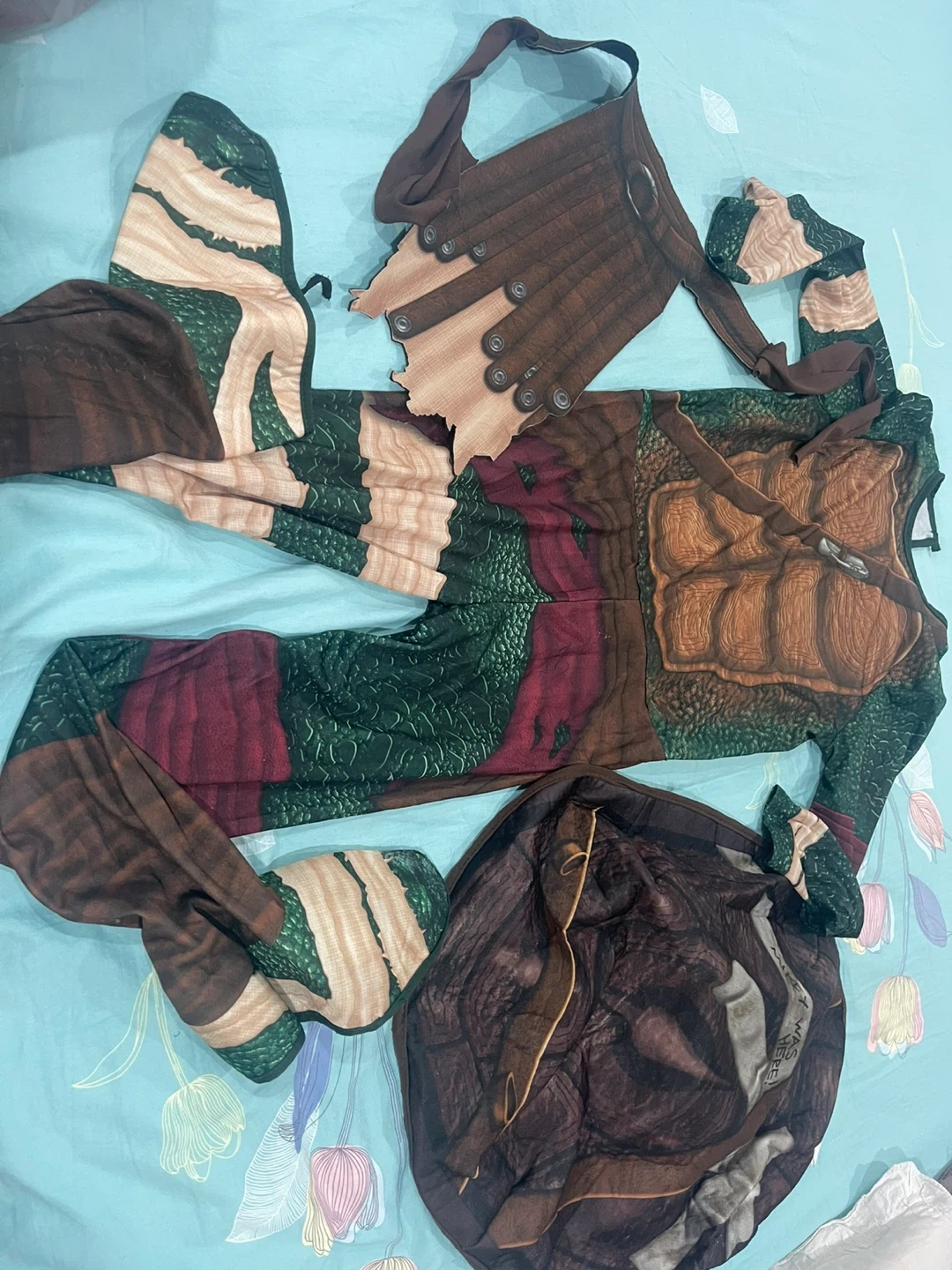 10Selling a Teenage Mutant Ninja Turtle costume! It includes the full body suit, the shell, and the head covering. Perfect for Halloween or dress-up!
