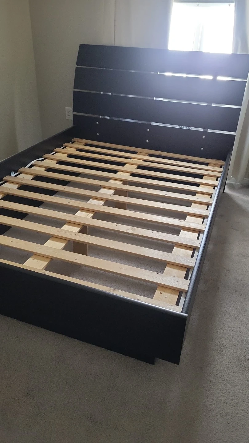Buy & SellDouble bed frameDouble bed frame$180Black platform bed frame. Features a sleek headboard with horizontal accents. Includes sturdy wooden slats for mattress support. WHERE TO MEETHalton HillsView MapSELLERsarahGeorgetown00 reviews1 chats·0 favorites·9 viewsSEND CHAT TO SELLERHi sarah! I’m interested in your listing.Hi sarah! I’m interested in your listing.Get the Karrot app to chatSign In to chat