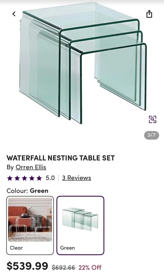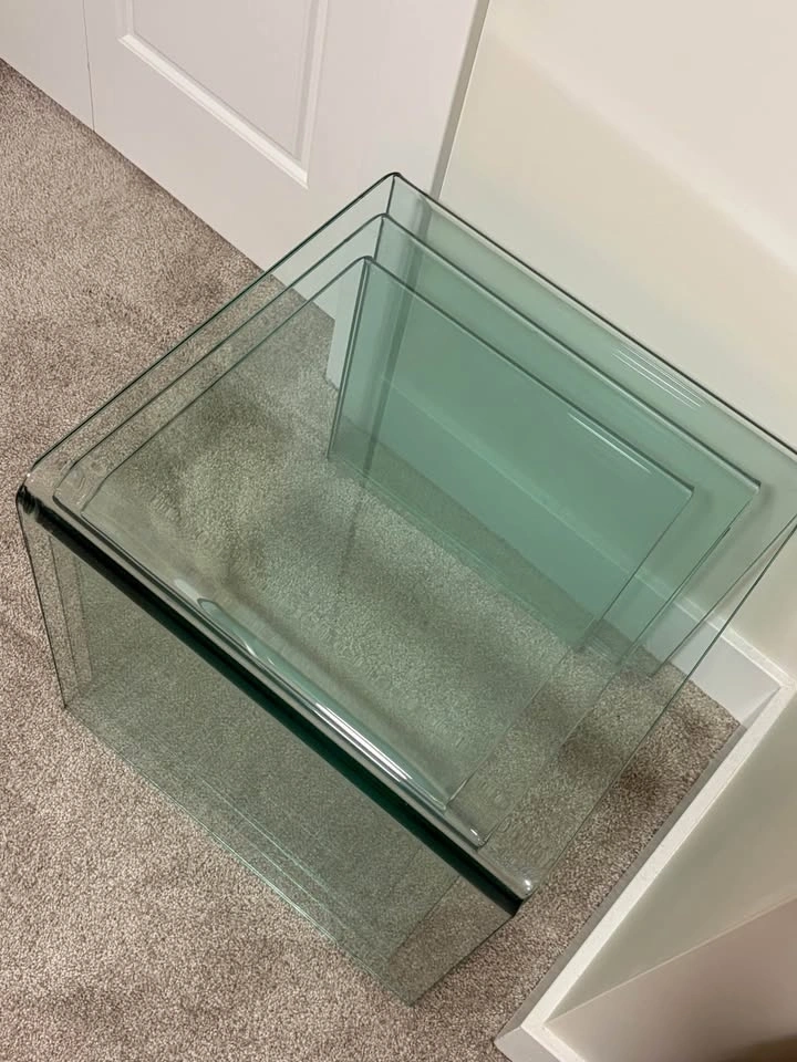 Buy & SellGlass Nesting TablesGlass Nesting Tables$250The biggest size is 16.5 inches all around. Feel free to message if you have any questions!WHERE TO MEETSetonView MapSELLERverifiedJohnSeton1117 reviews0 chats·1 favorites·27 viewsSEND CHAT TO SELLERHi John! I’m interested in your listing.Hi John! I’m interested in your listing.Get the Karrot app to chatSign In to chat