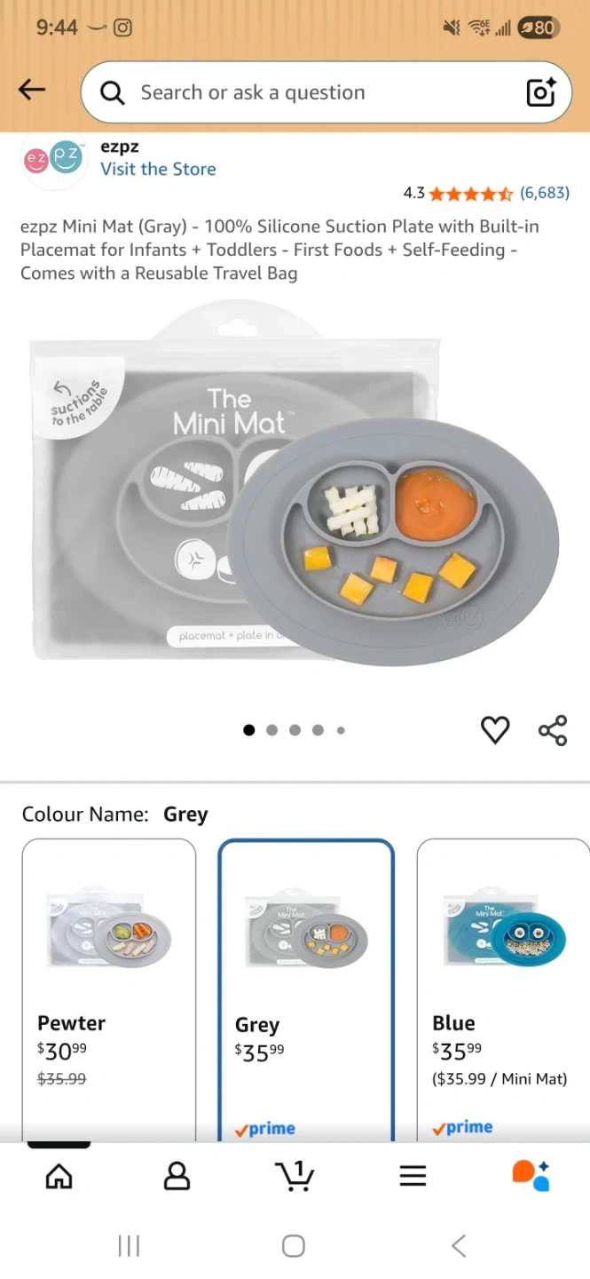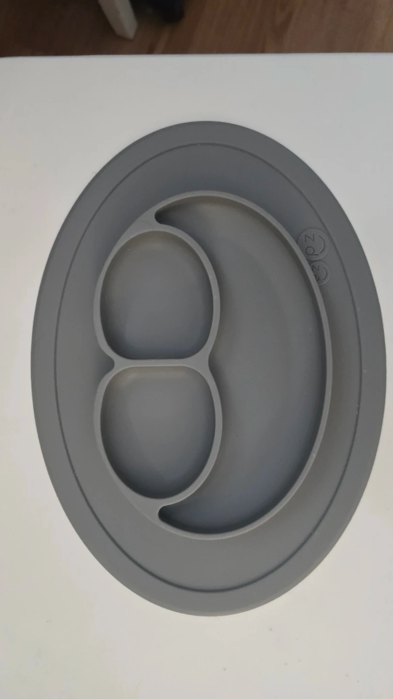 This ezpz Mini Mat is made from 100% silicone. It's designed for infants and toddlers and has a built-in placemat with three compartments for food. The mat suctions to the table to prevent spills!