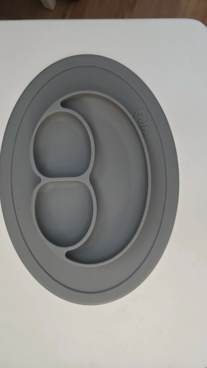 This ezpz Mini Mat is made from 100% silicone. It's designed for infants and toddlers and has a built-in placemat with three compartments for food. The mat suctions to the table to prevent spills!