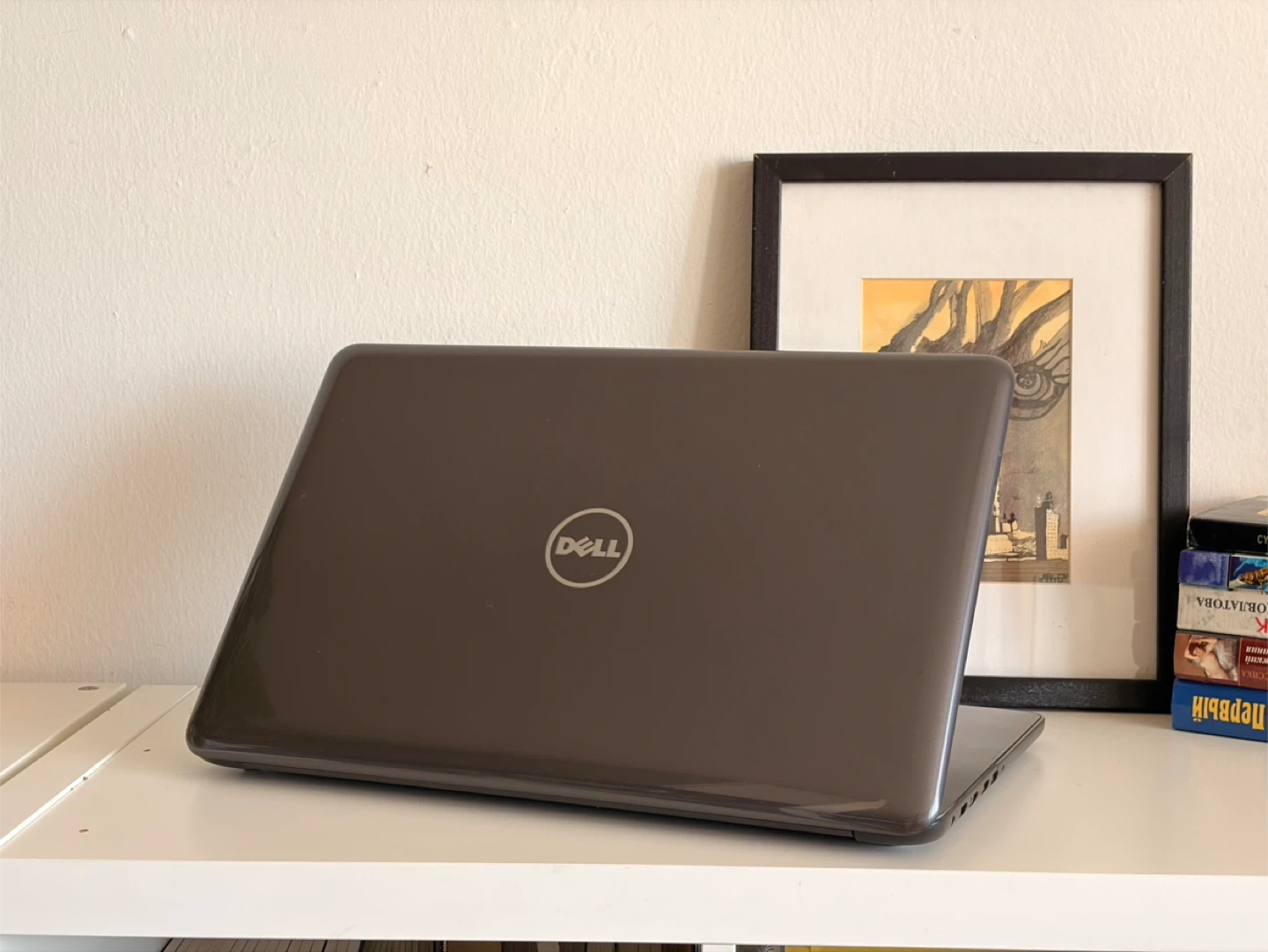 Used large Dell laptop. It's a functional computer with a standard keyboard and trackpad. The screen displays the Dell logo. Includes multiple USB ports for connectivity. Great for everyday tasks!