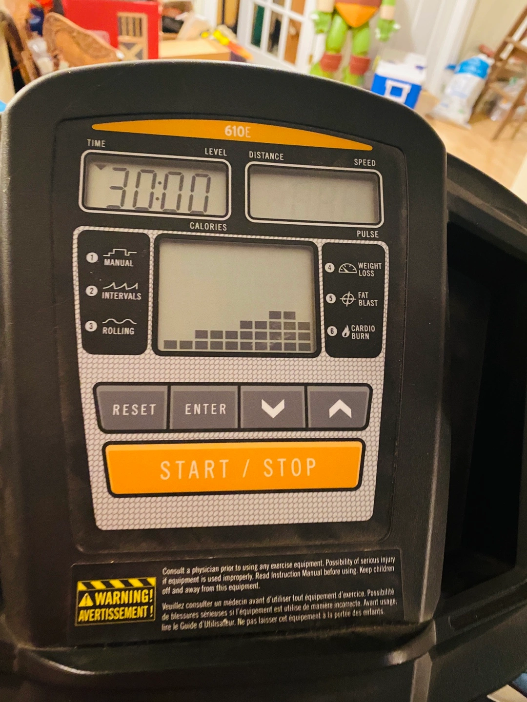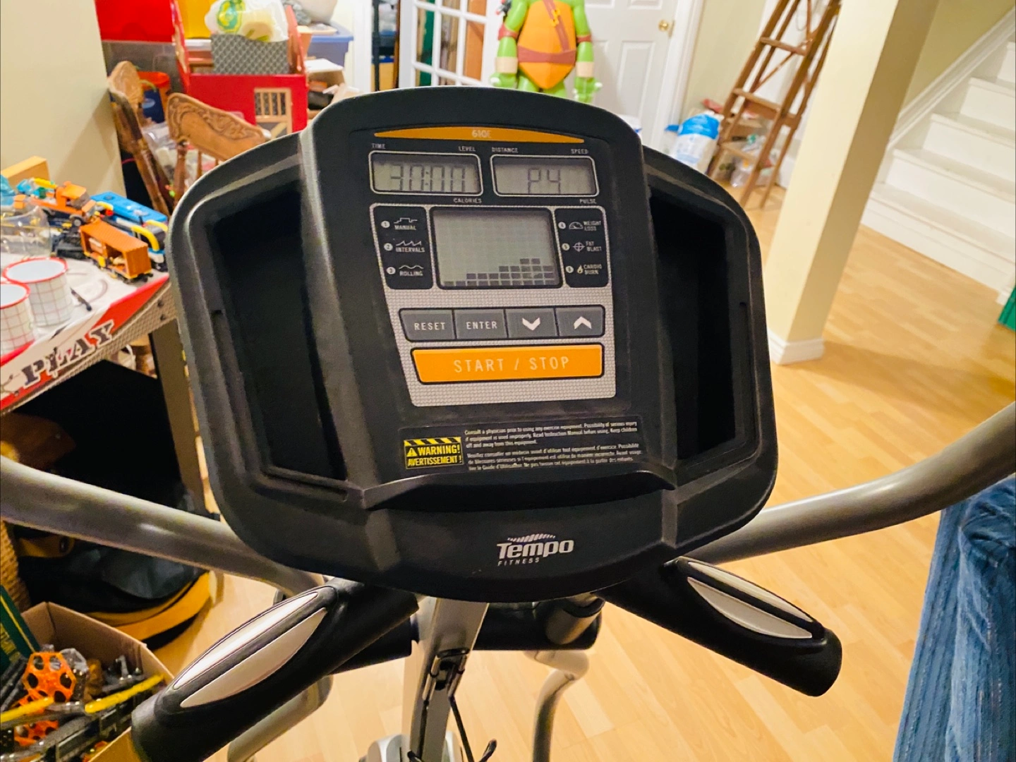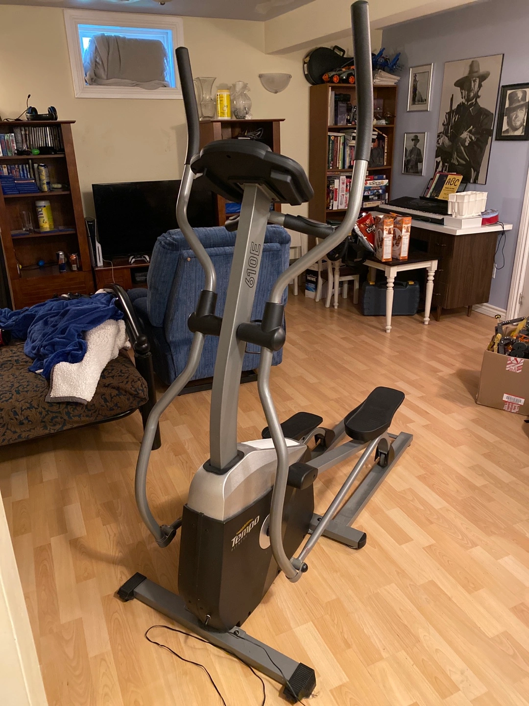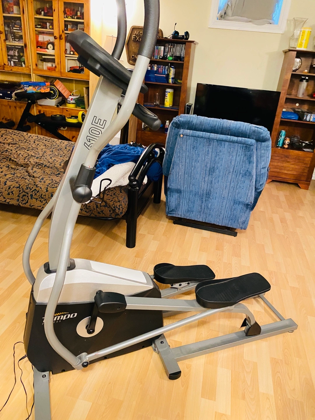 Selling a Tempo Fitness 610E elliptical machine! It's in good working condition, it does squeak a bit. The display shows time, level, distance, speed, calories, and pulse. Perfect for getting your cardio in at home!