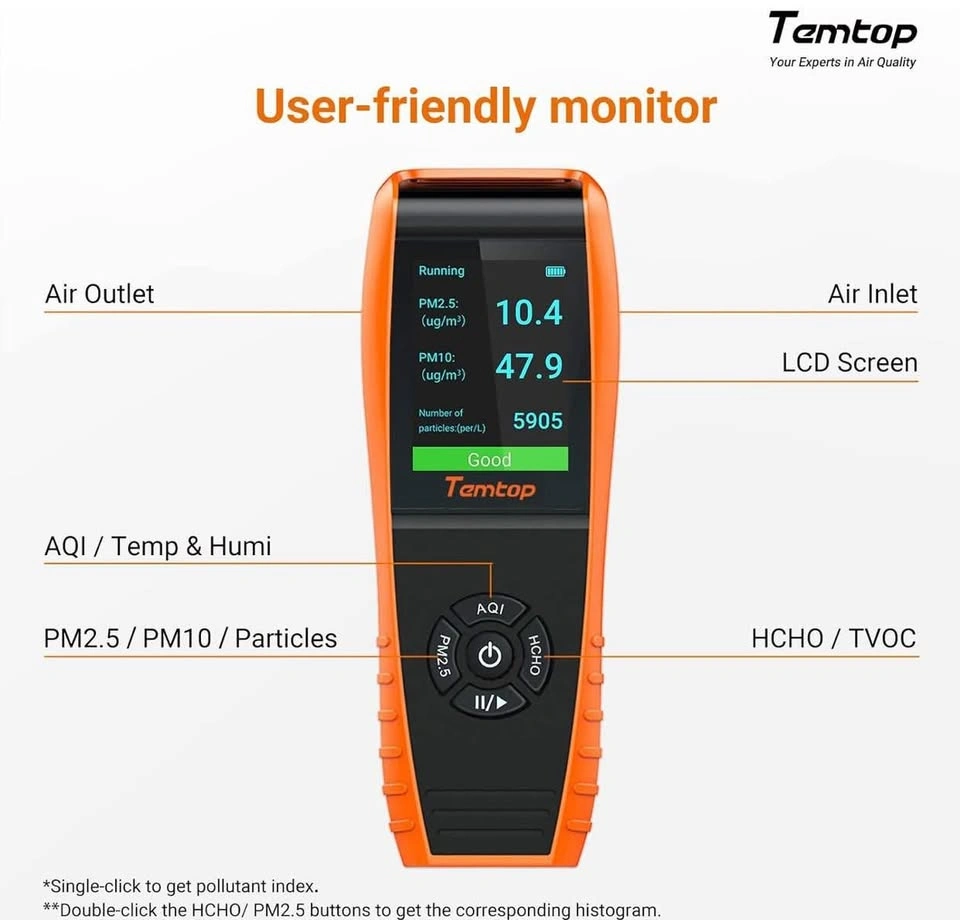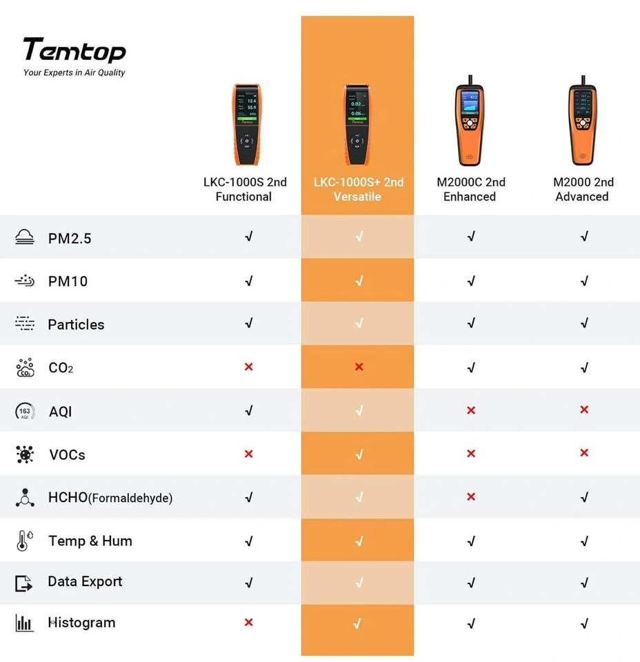 5Temtop LKC-1000S+ 2nd Generation Air Quality Monitor (PM2.5/PM10, HCHO, AQI). Brand new and designed for accurate air quality analysis, providing reliable readings of particulate matter and formaldehyde levels to ensure a healthy environment.