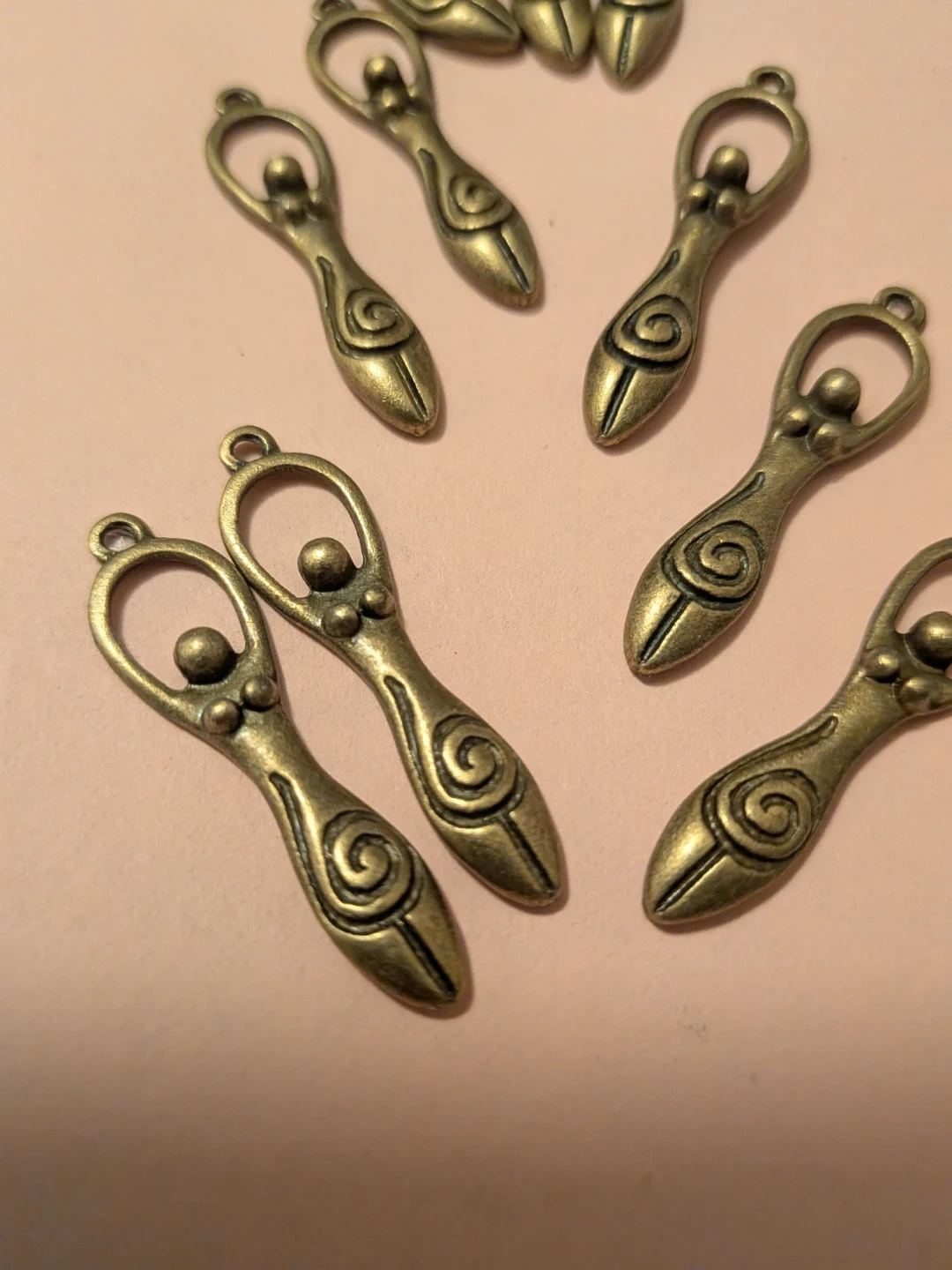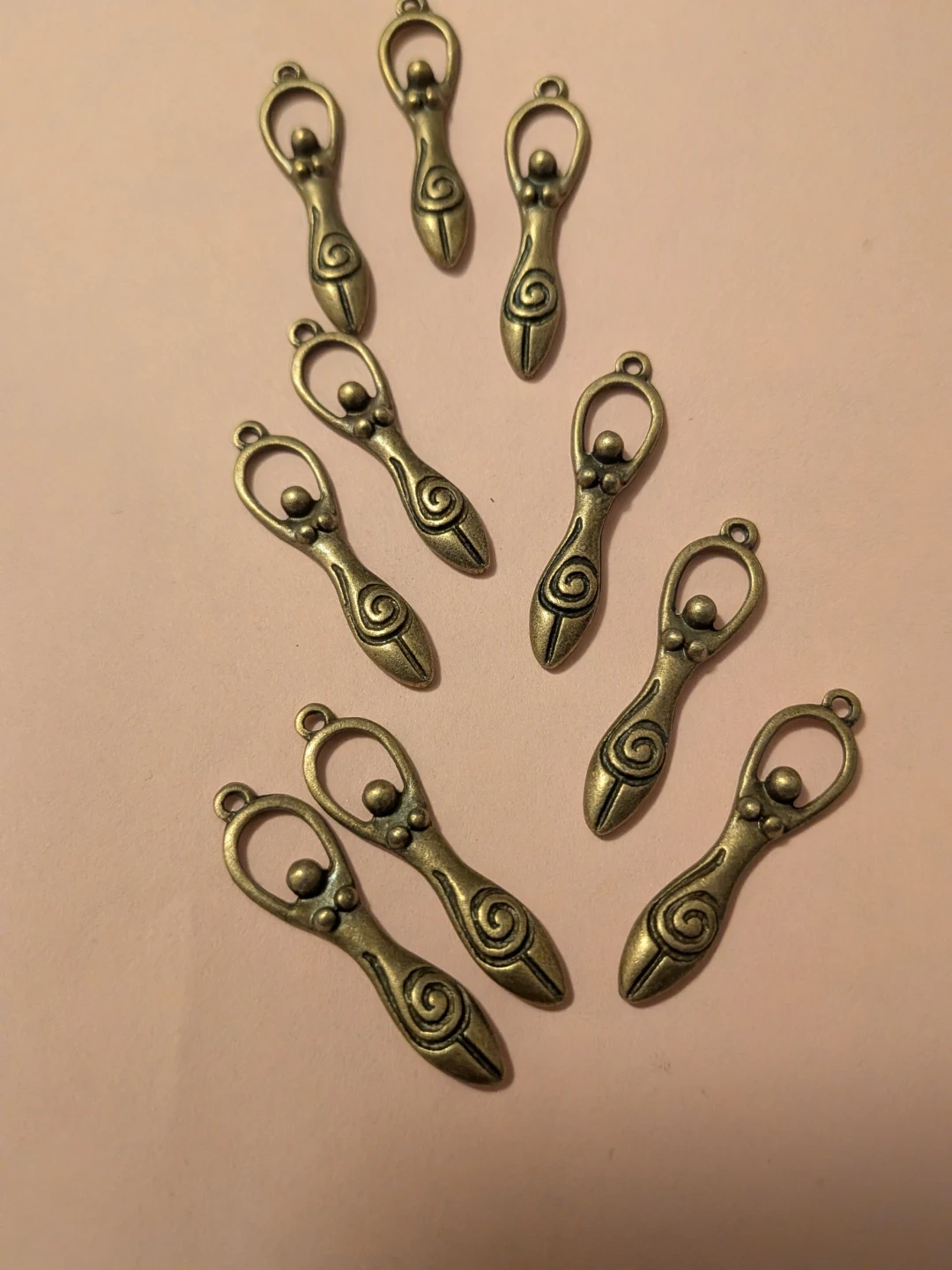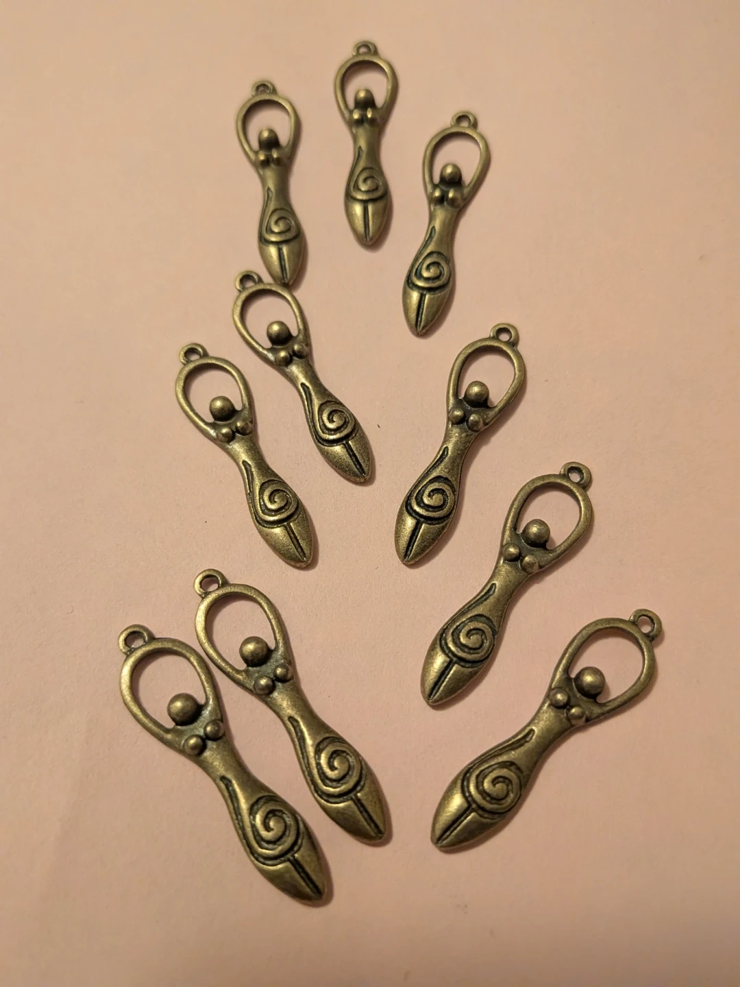180Ten cute bronze metal goddess charm pendants Good for crafts, necklaces, charms New in package Measures about an inch long Cash only, No etransfers Location: Etobicoke. Rathburn Road and Renforth drive. Etobicoke Olympium nearby. 5 mins from Pearson Airport. I cannot meet outside this area