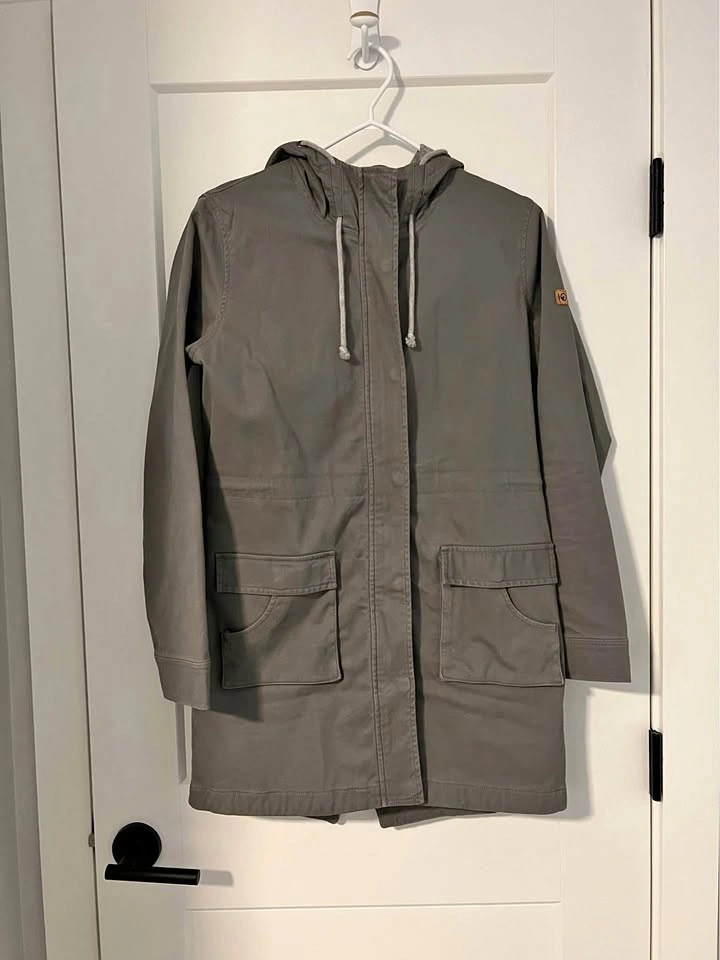 15Fantastic grey cotton fall jacket by Tentree. Woman's small from a smoke free home. Sadly it doesn't fit.