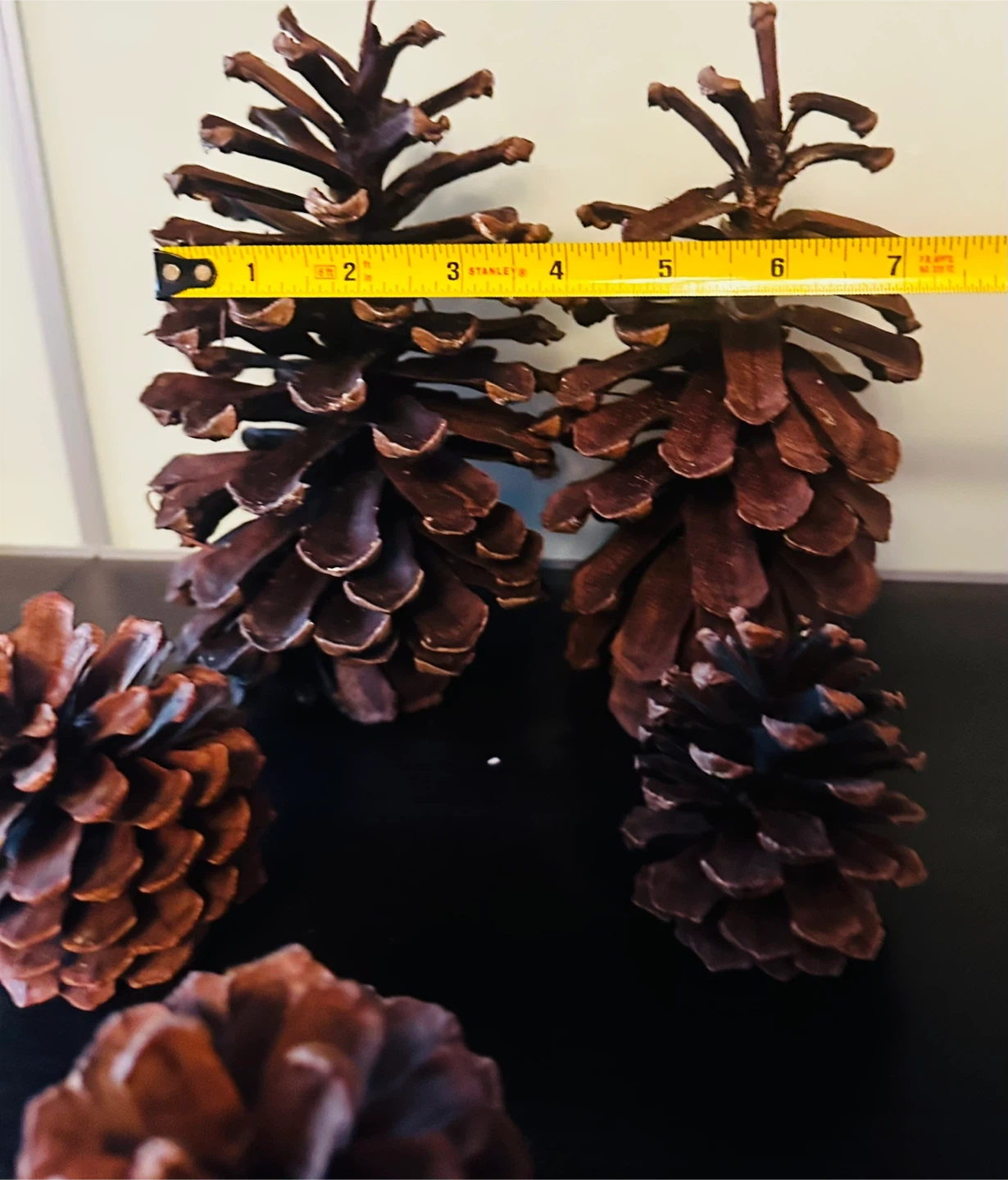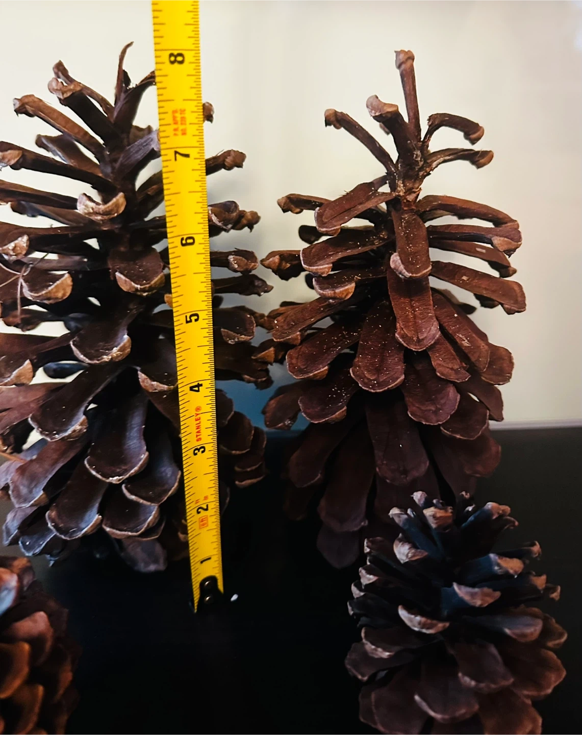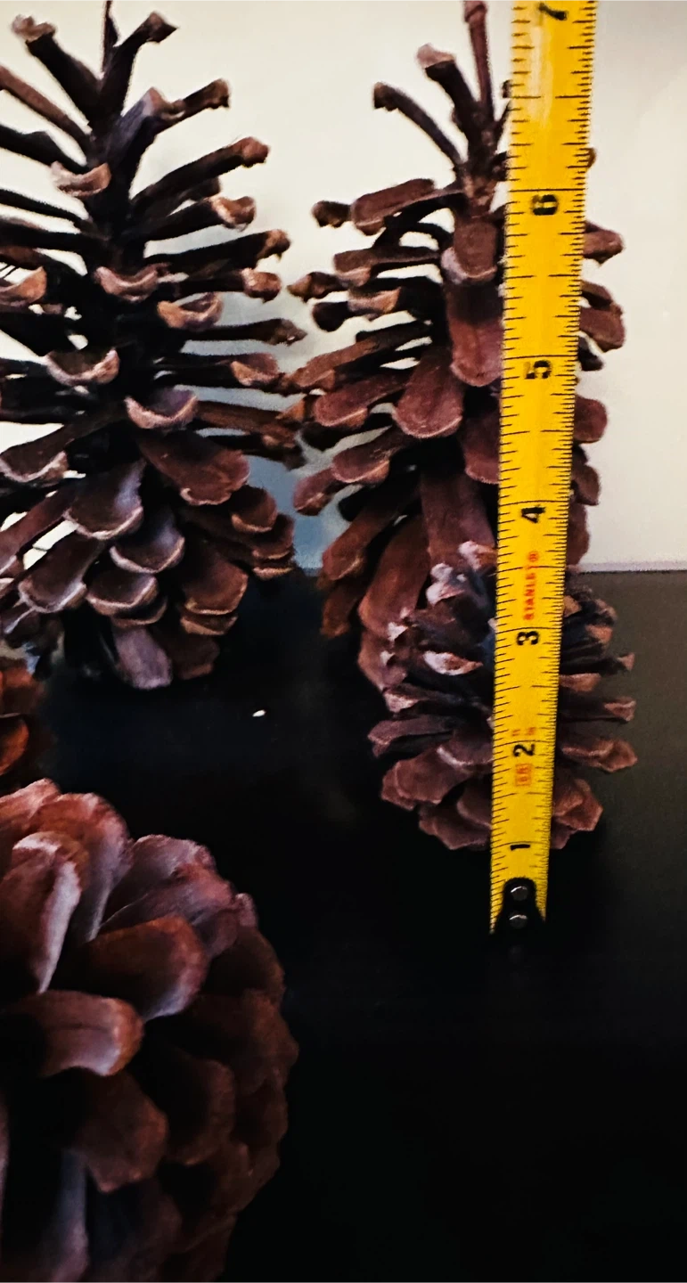Lot of natural pine cones, varying in size. The largest cone measures approximately 8 inches long. Great for crafting and seasonal decor!