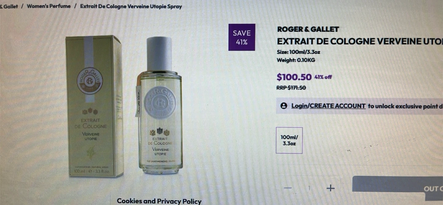 Selling a bottle of Roger & Gallet Extrait de Cologne Verveine Utopie. It's a 100ml/3.3oz size. Originally bought for $100.50