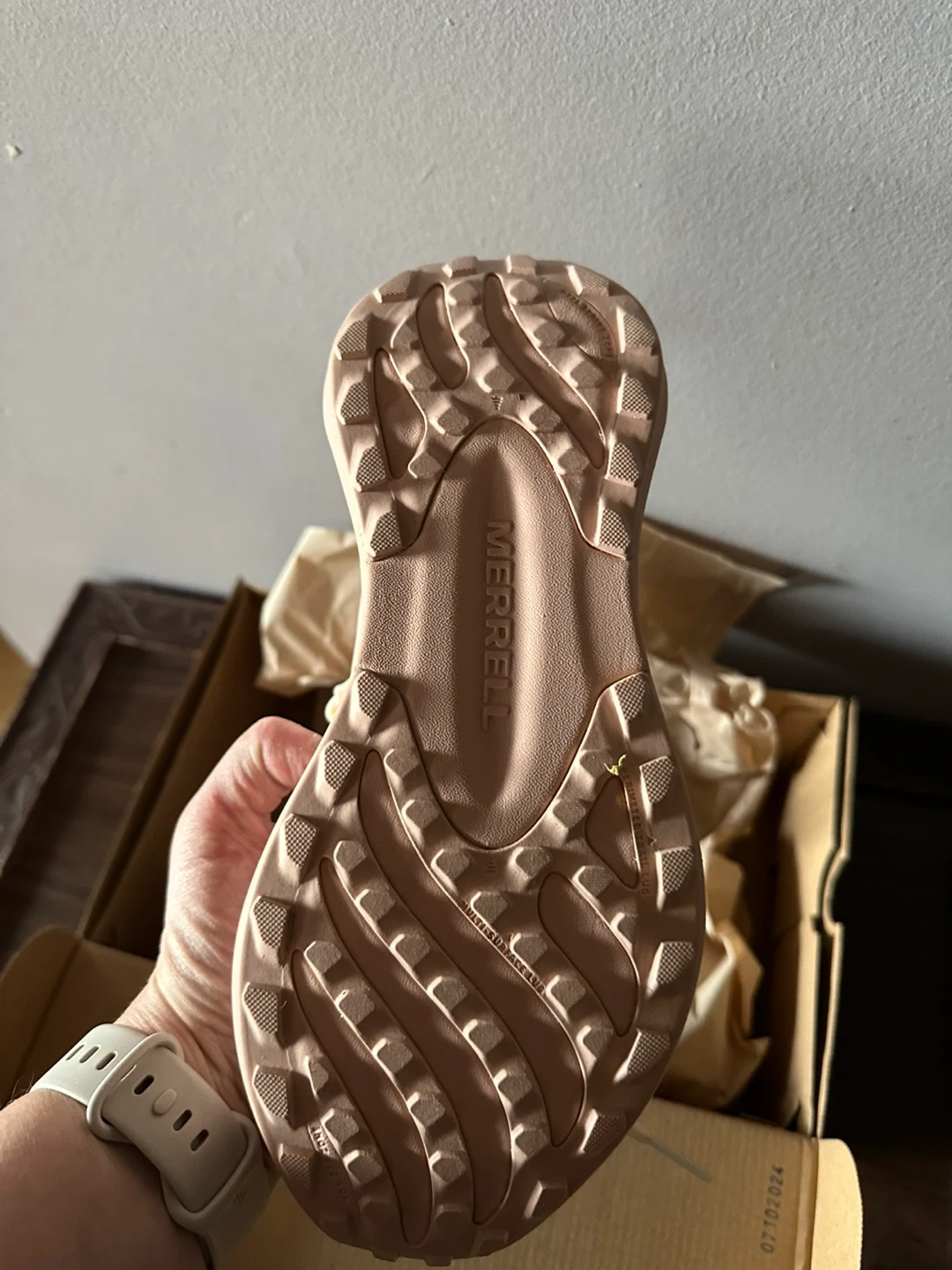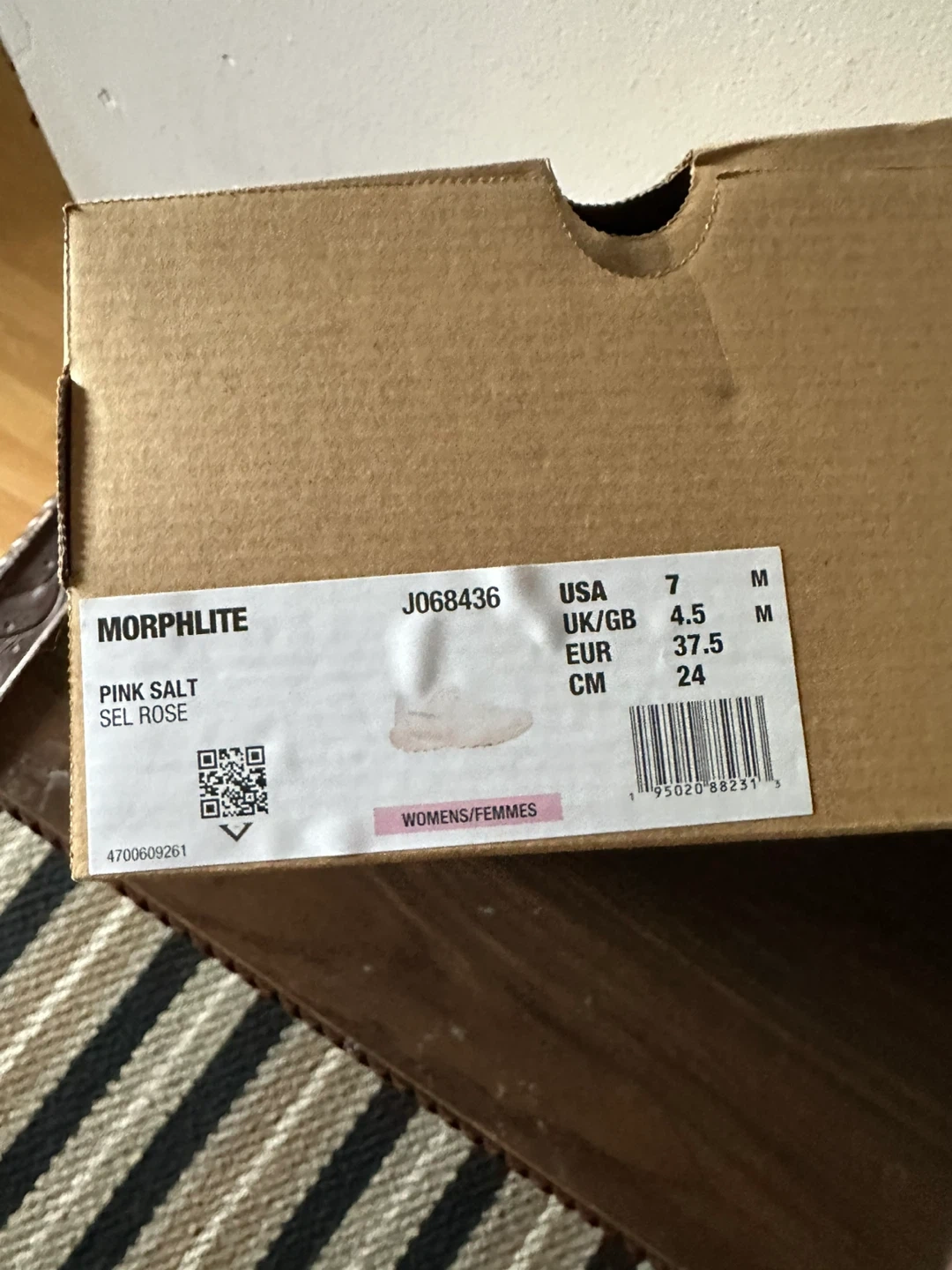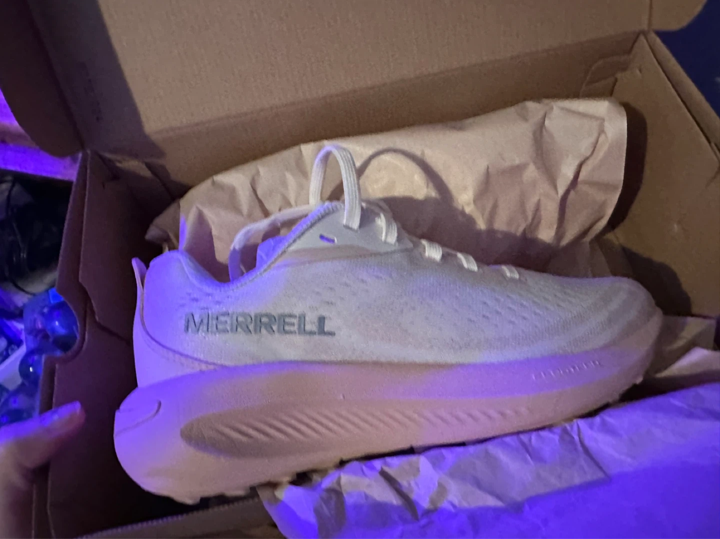 Merrell Morphlite running shoes in a light pink and white colourway. Women's size 7 US / 37.5 EUR. Includes original box.