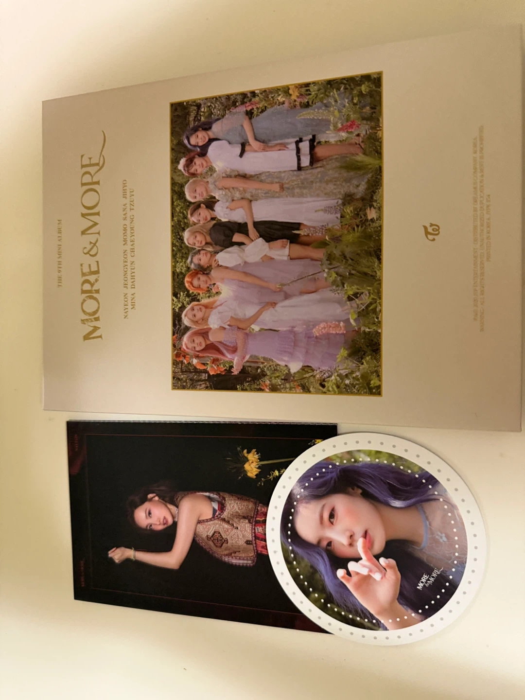 Selling the TWICE "MORE & MORE" album. It includes photocards and other inclusions.
