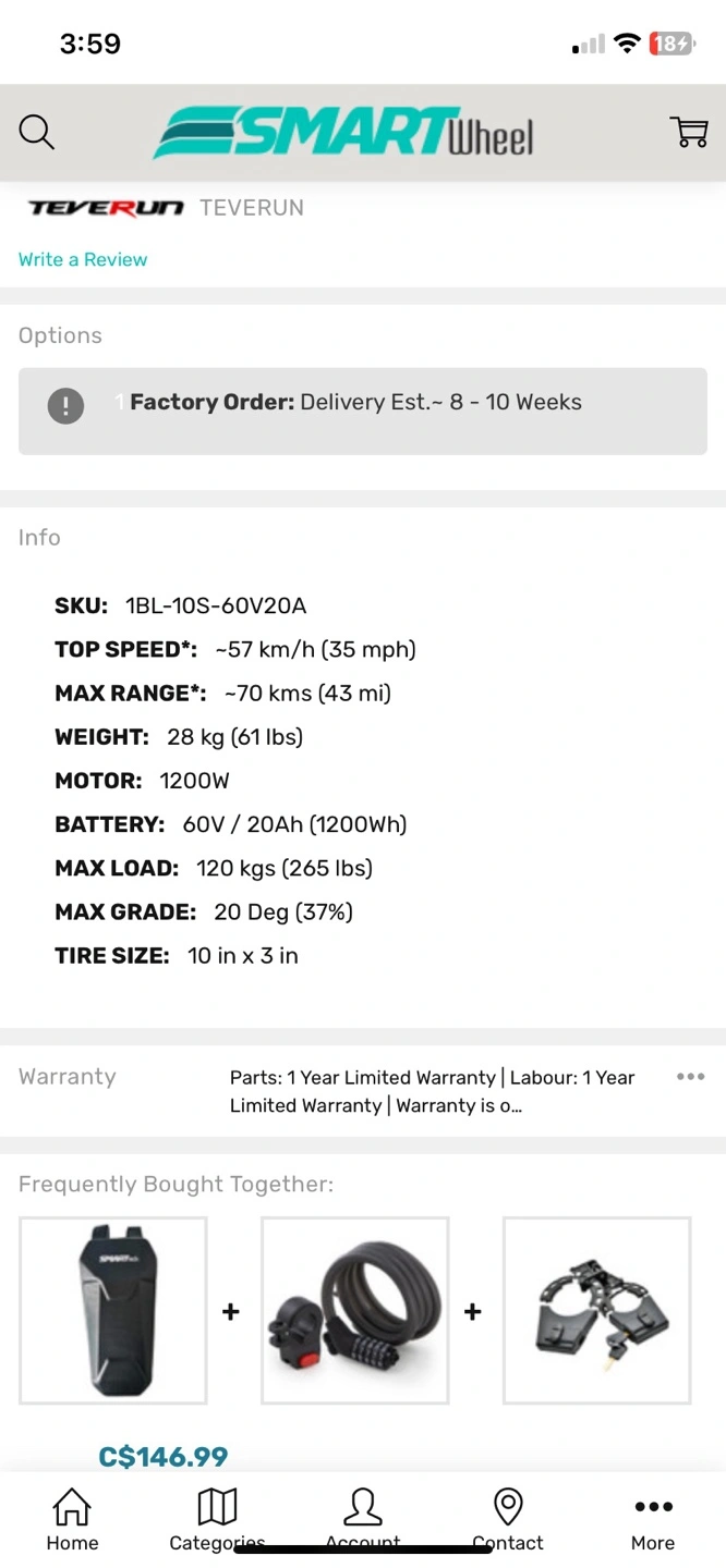 Powerful electric scooter. Features a 1200W motor and 60V 20Ah battery. Top speed of 57 km/h. Max range up to 70 kms.