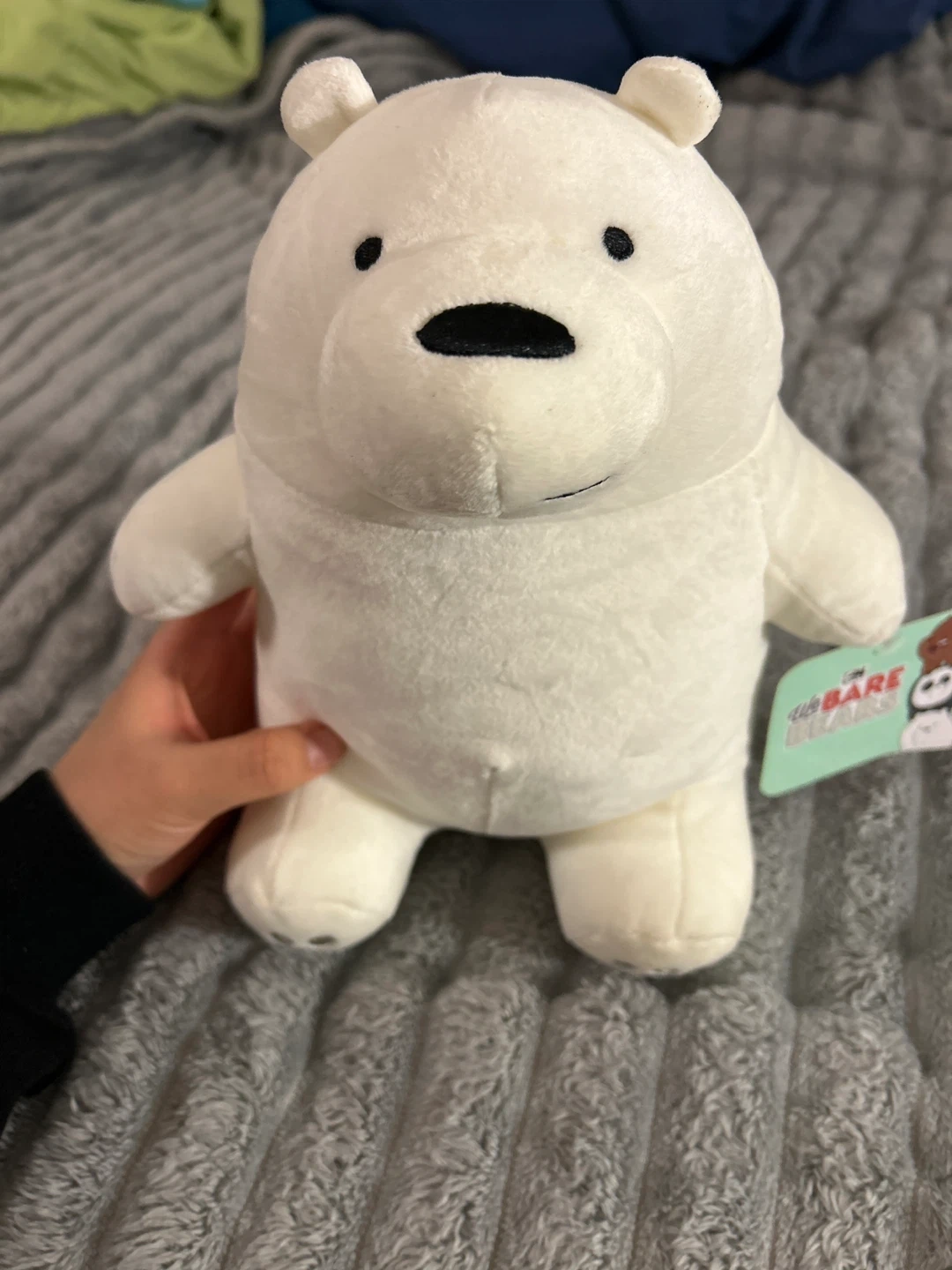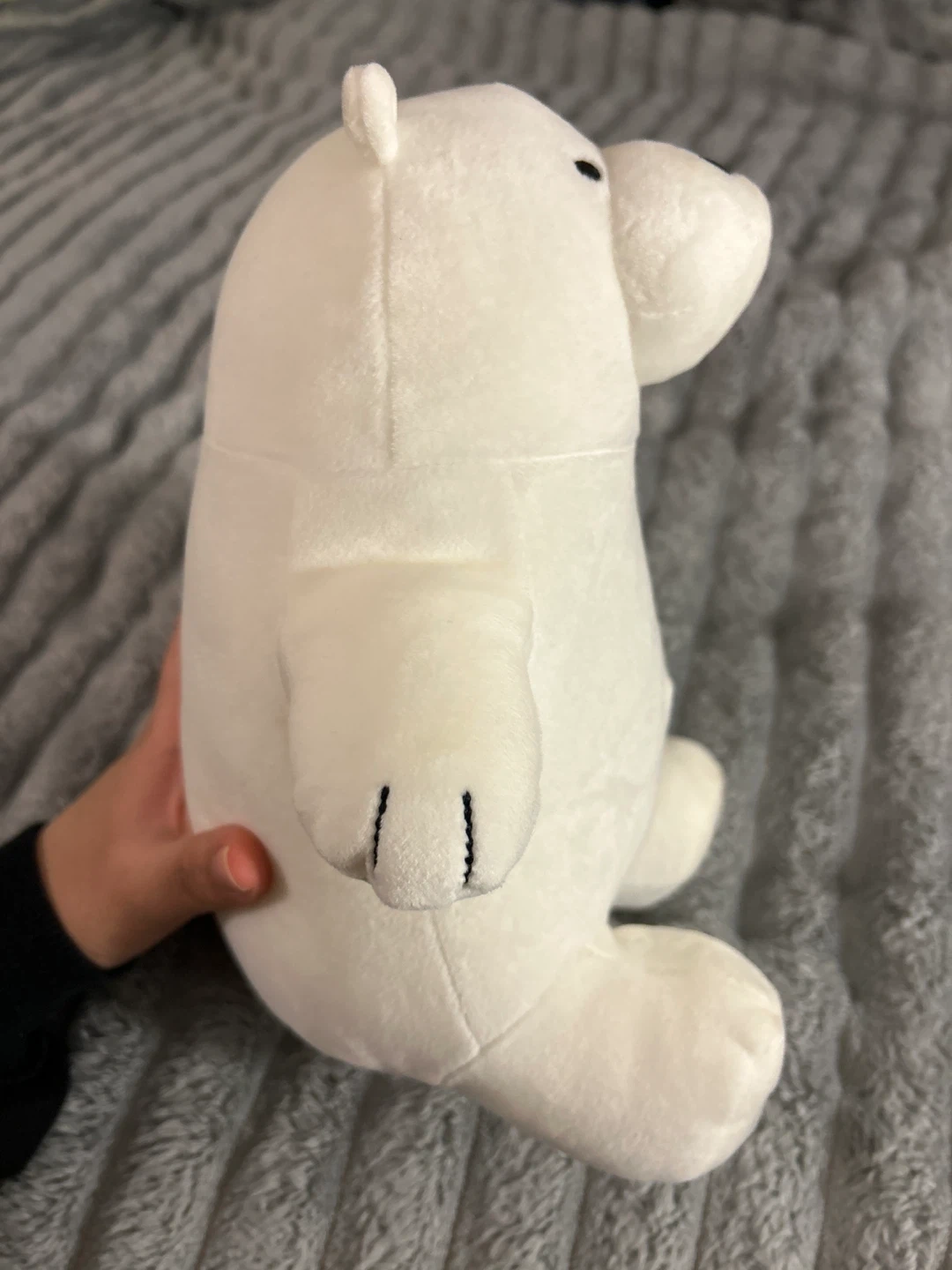 This is a plush toy of Ice Bear from We Bare Bears. It's white and soft, made for cuddles. It's a great size for playtime or display! (NEW)