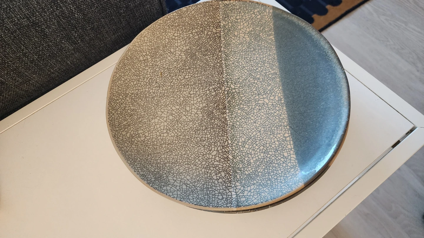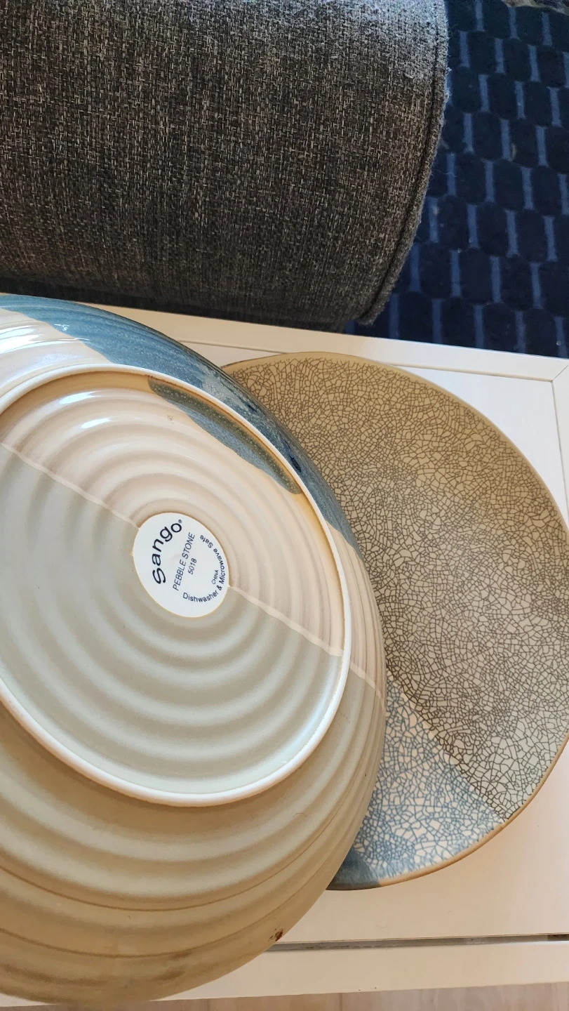 These Five Sango Pebble Stone dinner plate comes in a lovely blue and beige cracked glaze design.
