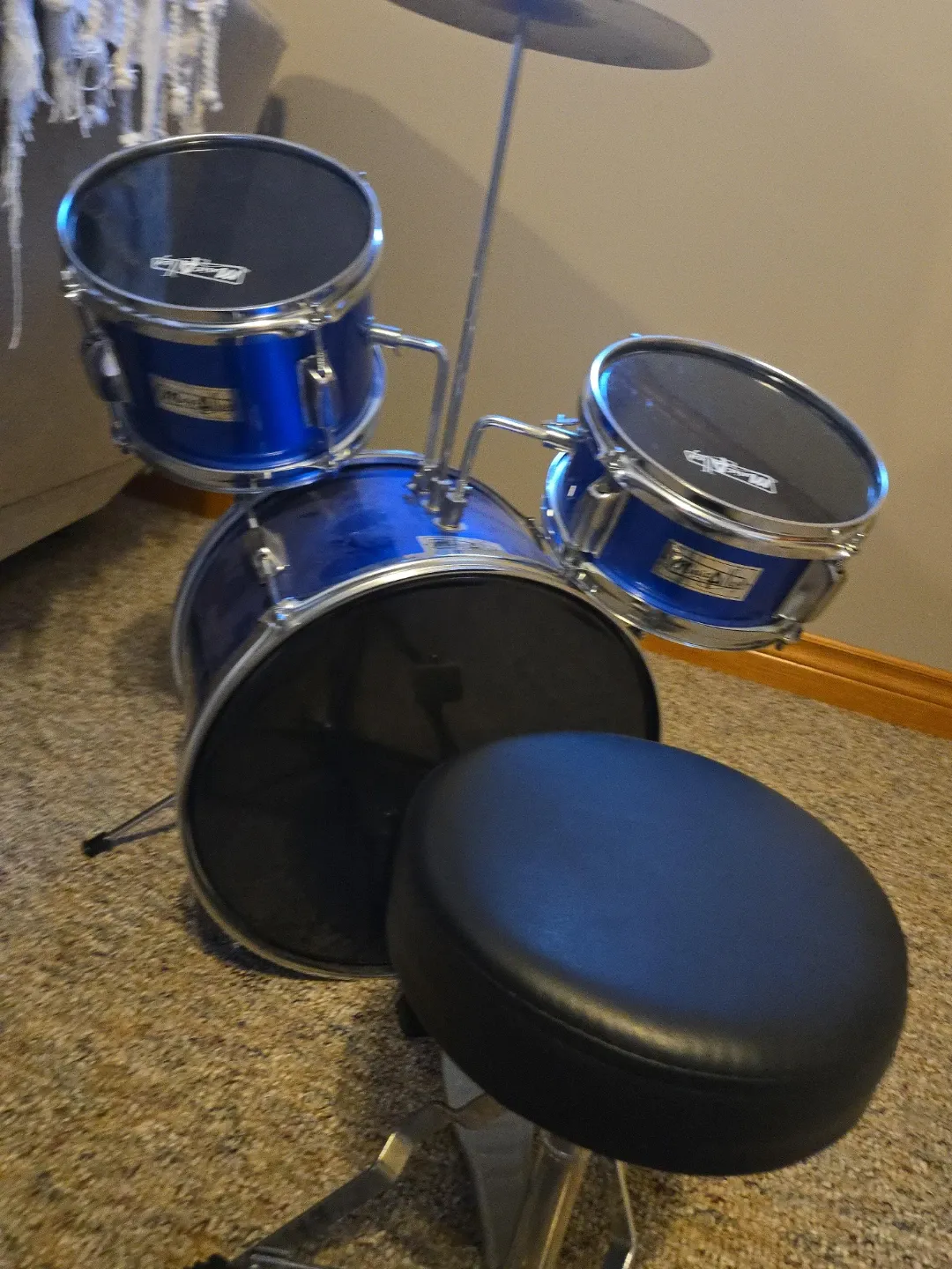 Kids Blue Drum Set with Stool