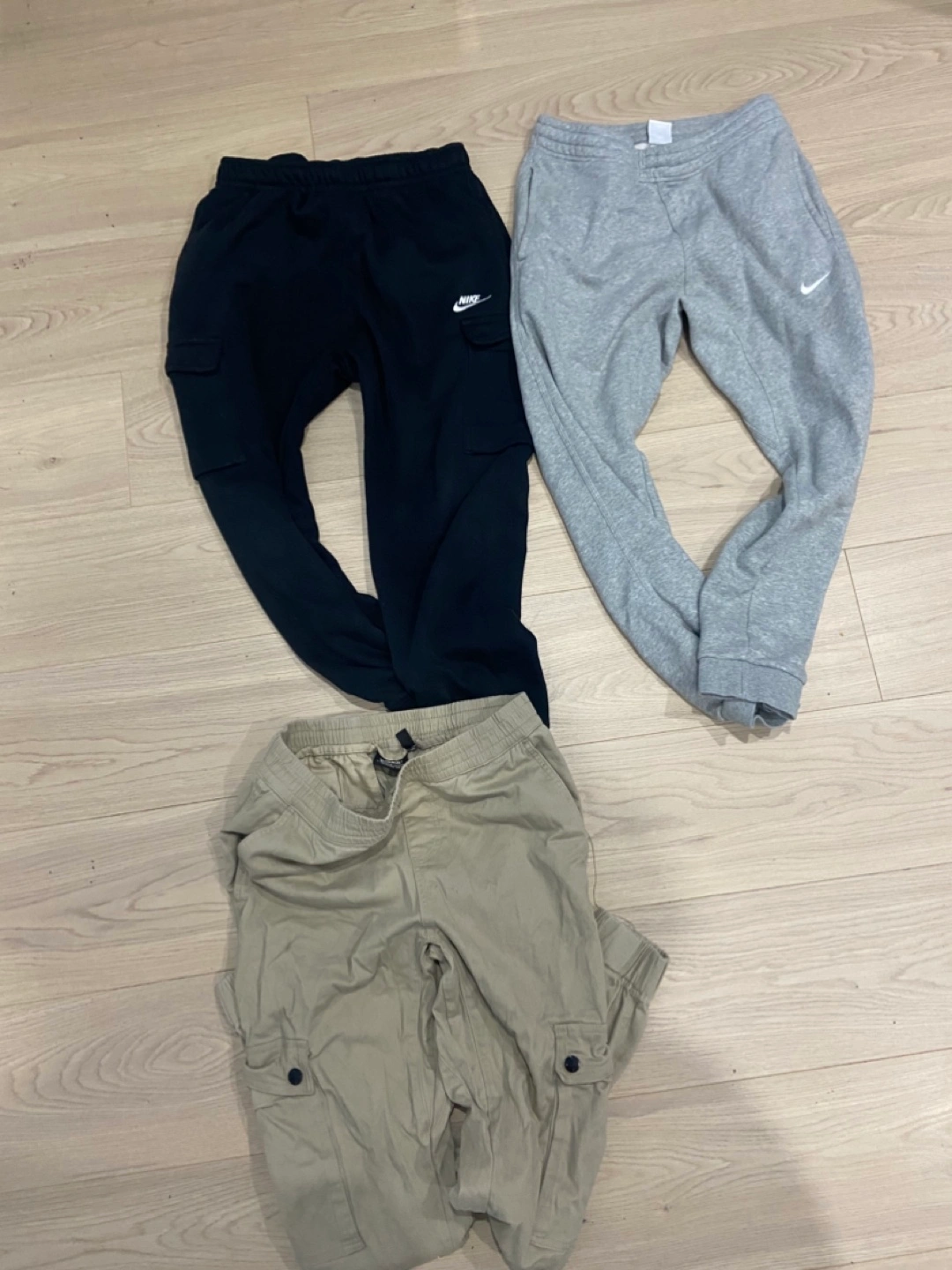 Selling a set of Nike sweatpants in black, grey, and beige. They're in great condition.