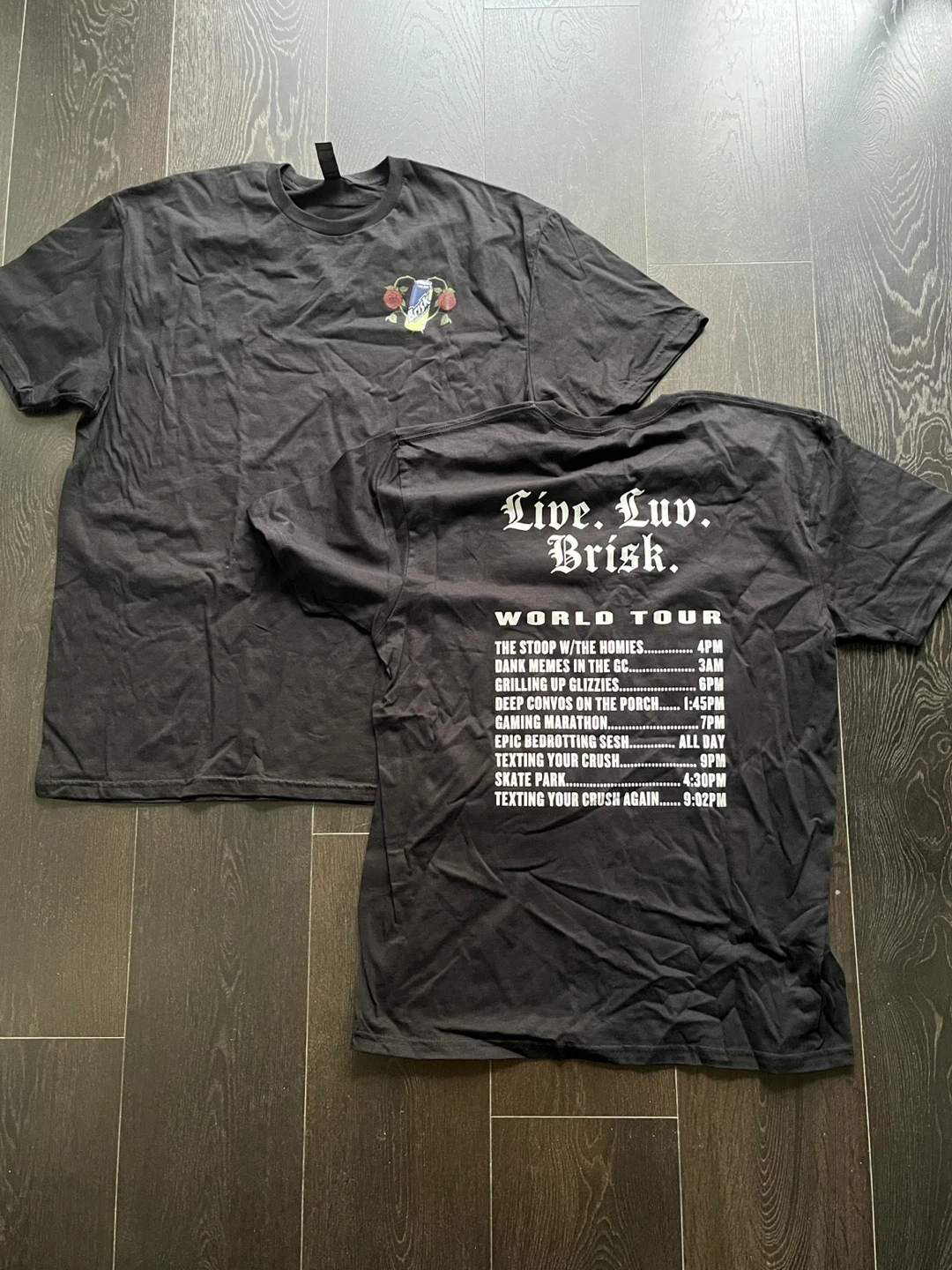 Brand new and never worn promotional graphic tees.