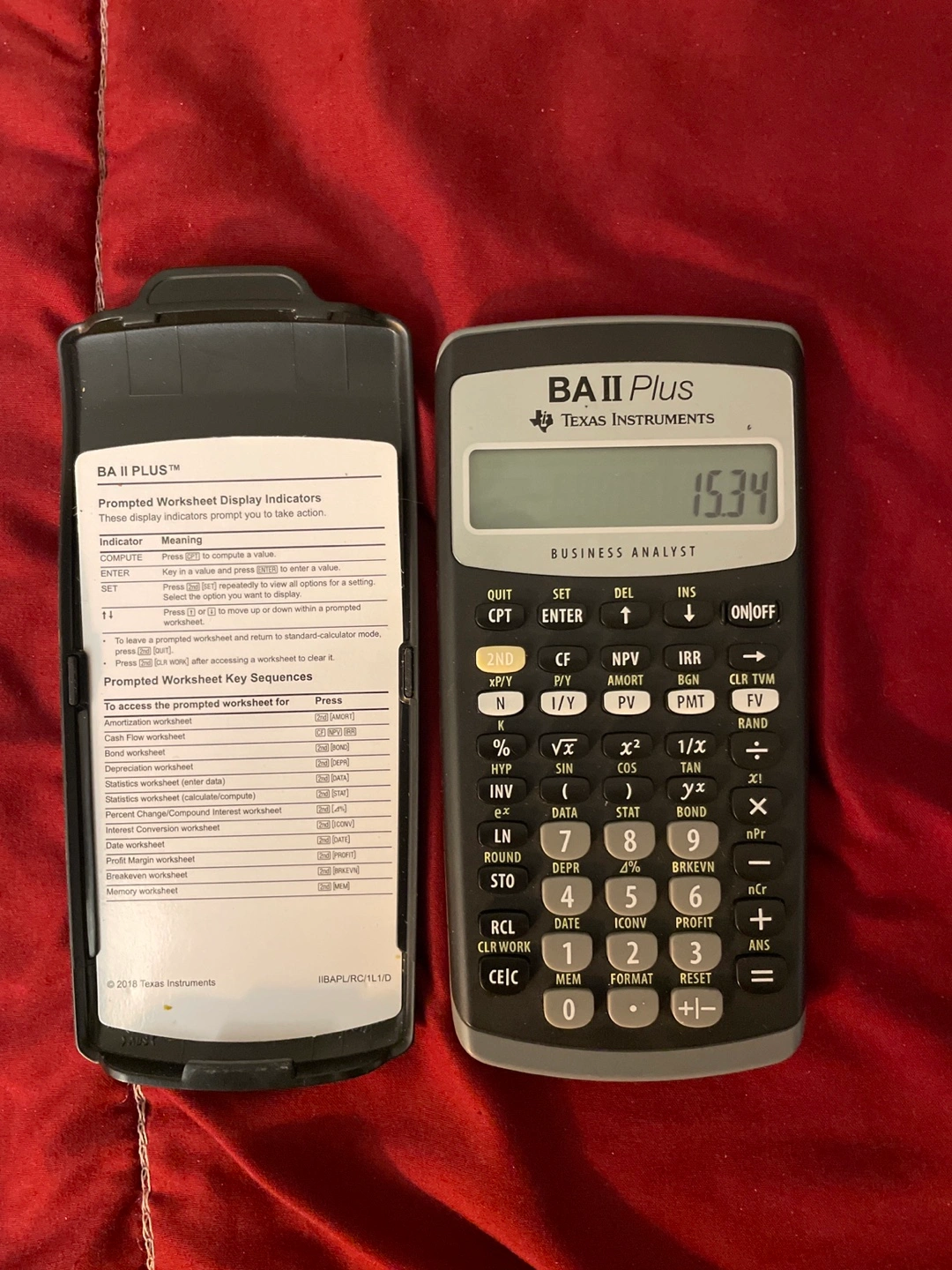 Texas Instruments BA II Plus financial / Scientific calculators. One black, Includes instruction booklet. Used, but in good condition.