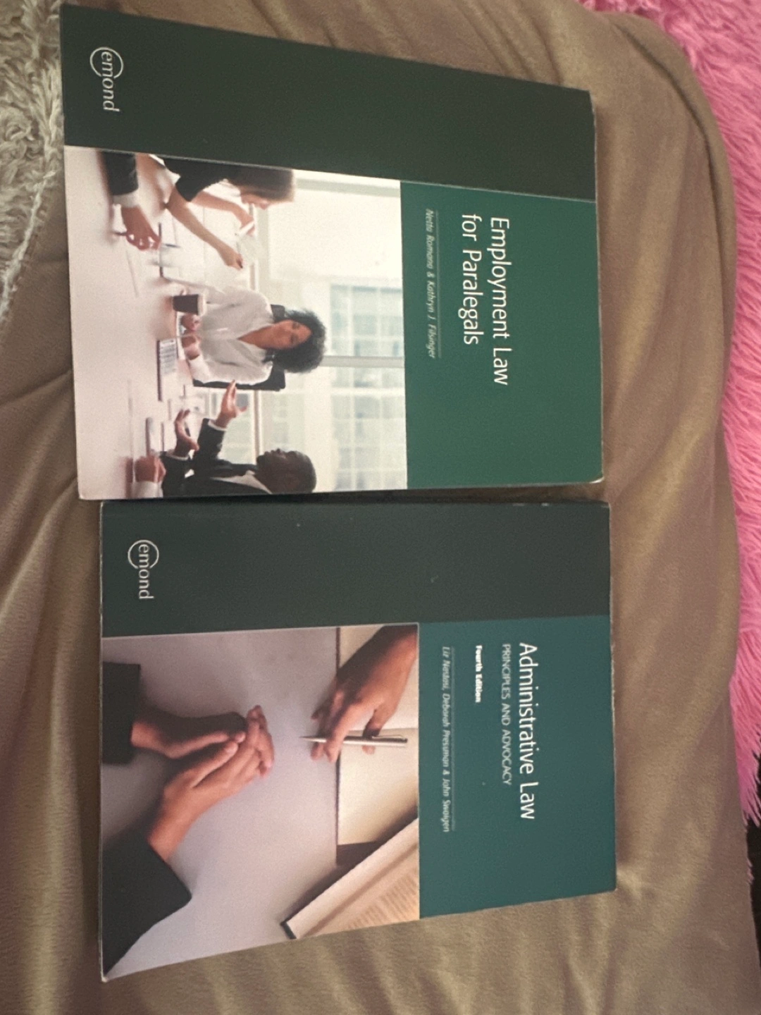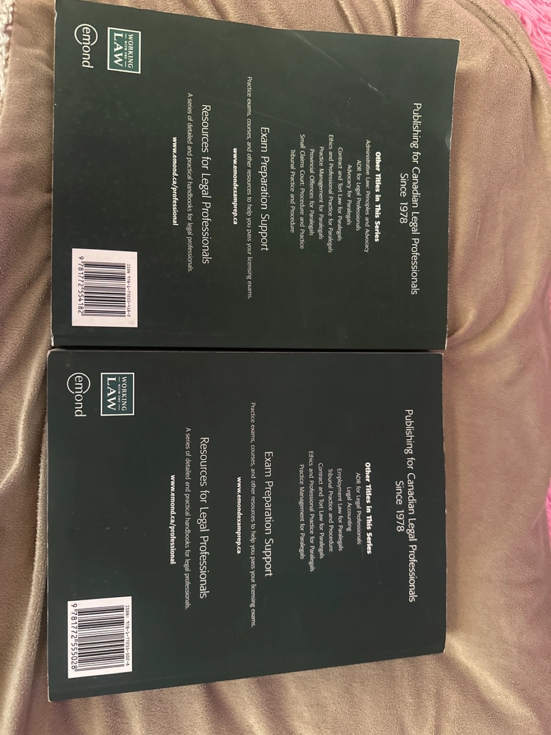 16Selling two Emond law books: - Employment Law for Paralegals by Arthi Balkaran & Kathryn N. Flanagan - Administrative Law Principles and Advocacy by Lorne Sossin, Colleen Flood, and John Bodrug These two textbooks were required for my studies in college and I have no use for them anymore.