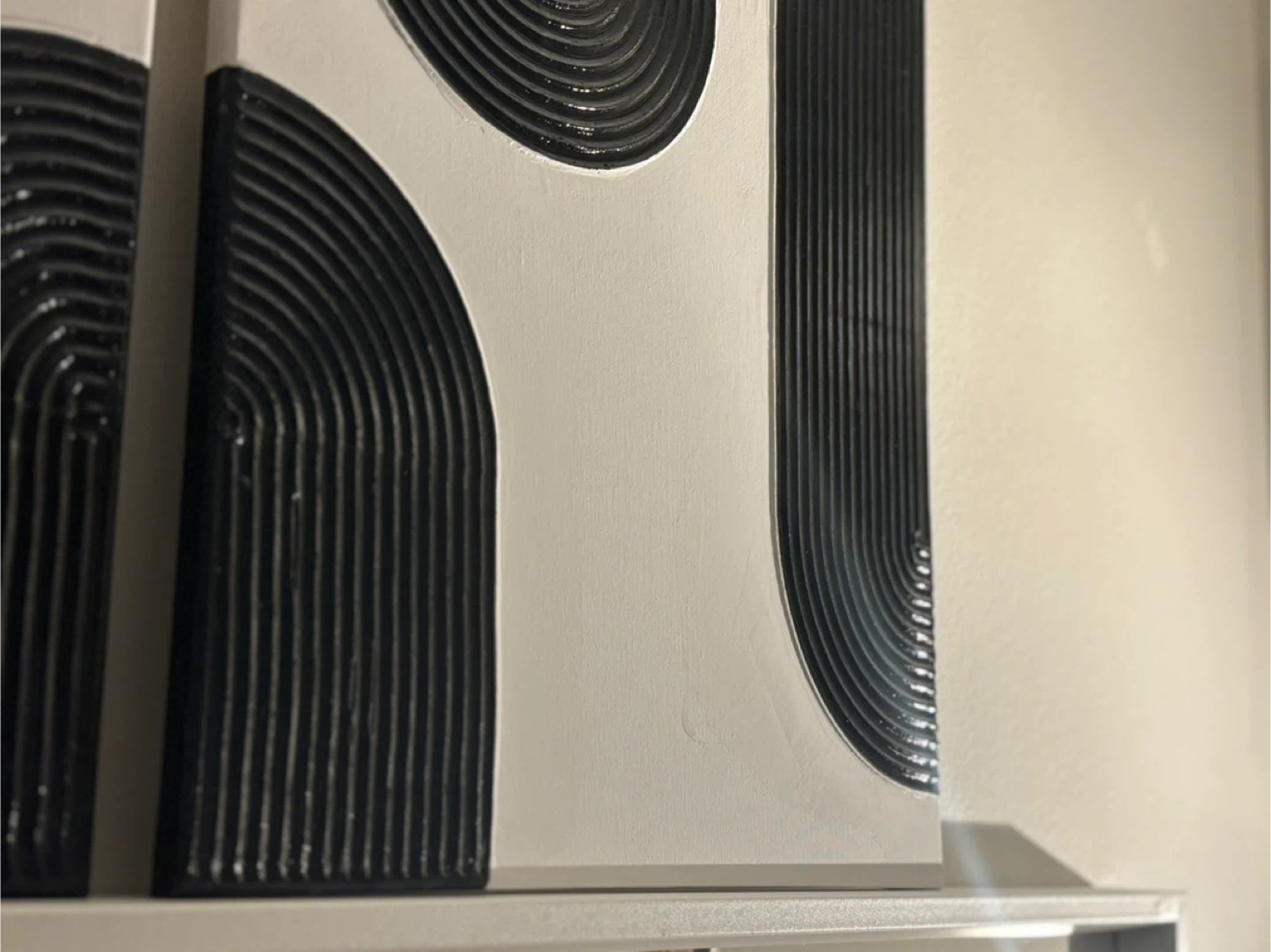 10Looking to add some modern flair to your space? I'm selling this striking set of black and white geometric canvas wall art! The raised texture adds a unique touch and creates a visually appealing statement piece for any room Smoke free and pet free home Asking $55 for all 3 together MEASUREMENTS: 20 inches by 16 inches Pickup is in Brampton, major intersection is Main and Vodden