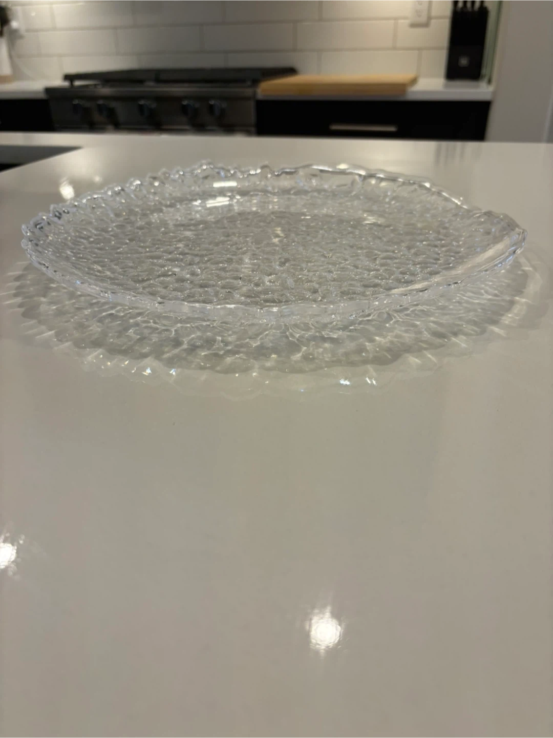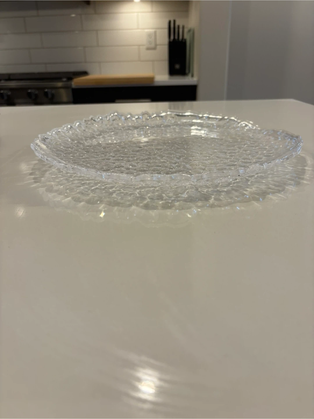 15Textured Clear Serving Tray For Sale. Excellent - like new condition. Approximately 12.5” in diameter. Great for the holiday season. Asking $10. East Regina pick up. Listed on other sites.
