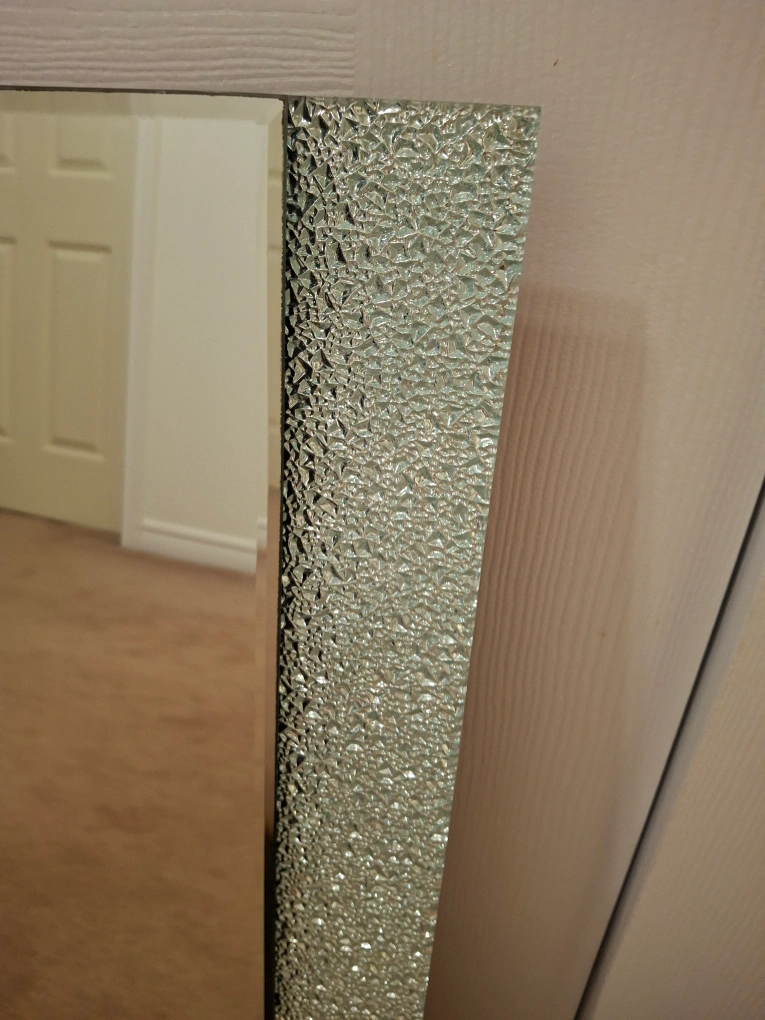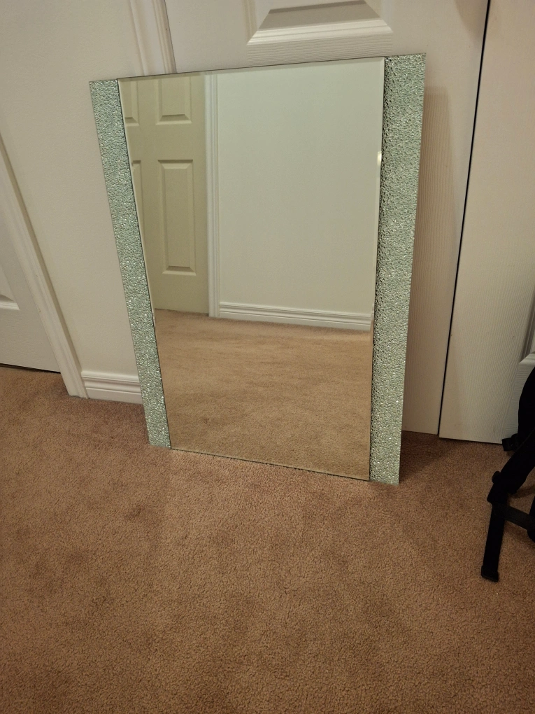 25Selling a mirror with a unique textured frame! It's in great condition and ready to add some sparkle to your space. Perfect for a bathroom or entryway