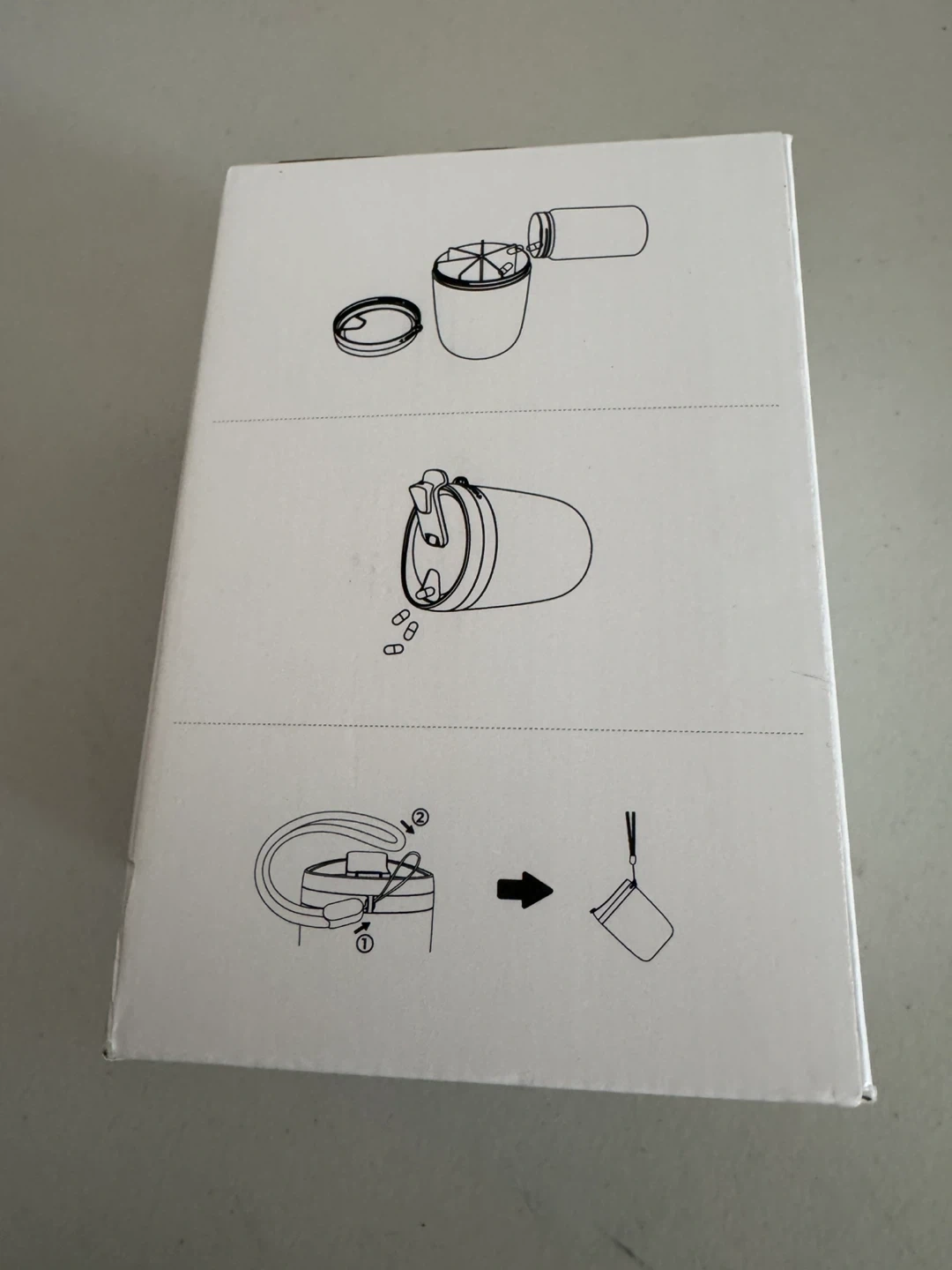This AUVON pill dispenser is designed for convenience, featuring a built-in water bottle. It's perfect for keeping your medication and hydration together on the go. The dispenser includes a strap for easy carrying and a small pouch.