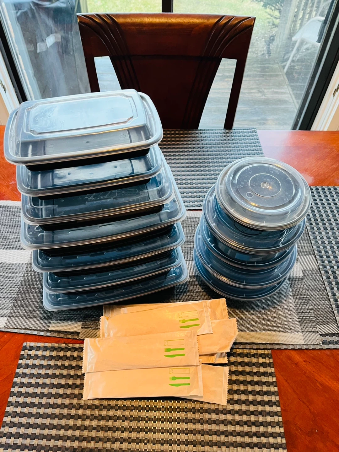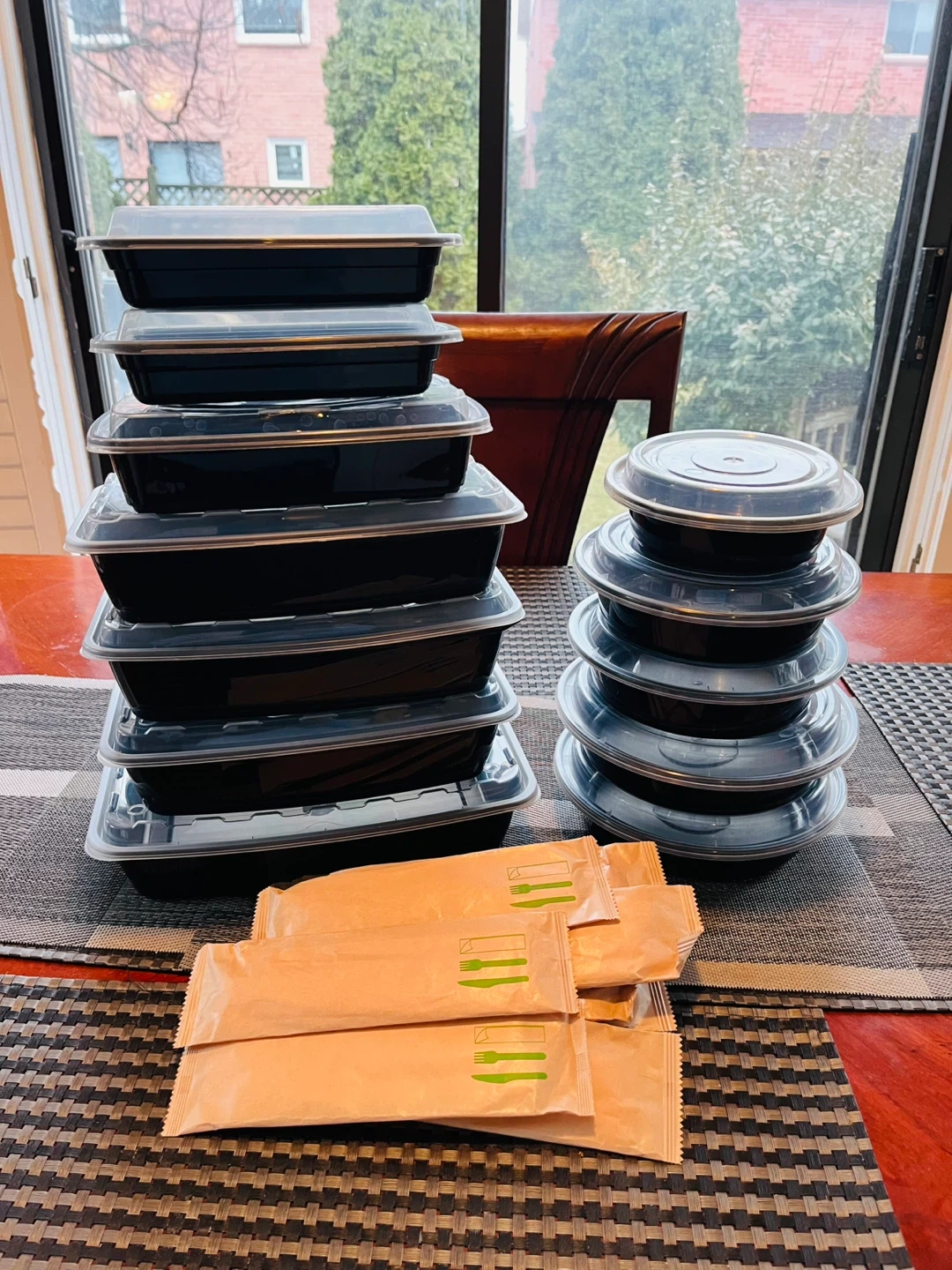 $5 CAD for the entire 12 (used once) takeout containers with lids. Comes with FREE 12 cutlery set of fork, knife and napkin UNUSED still in original packaging. Smoke free home.