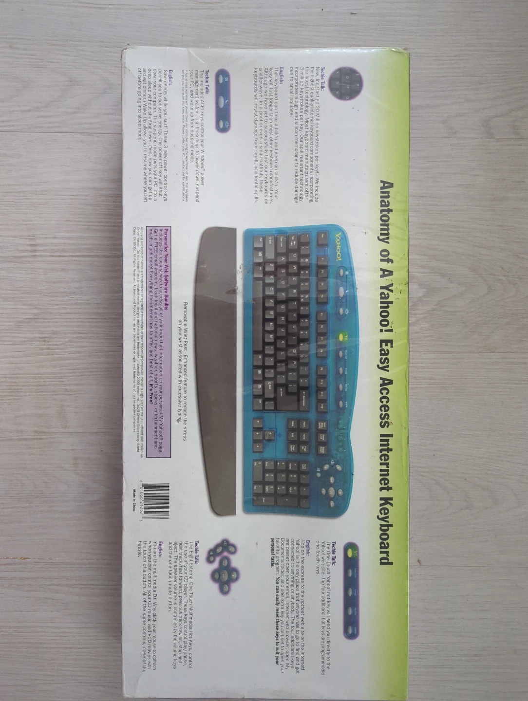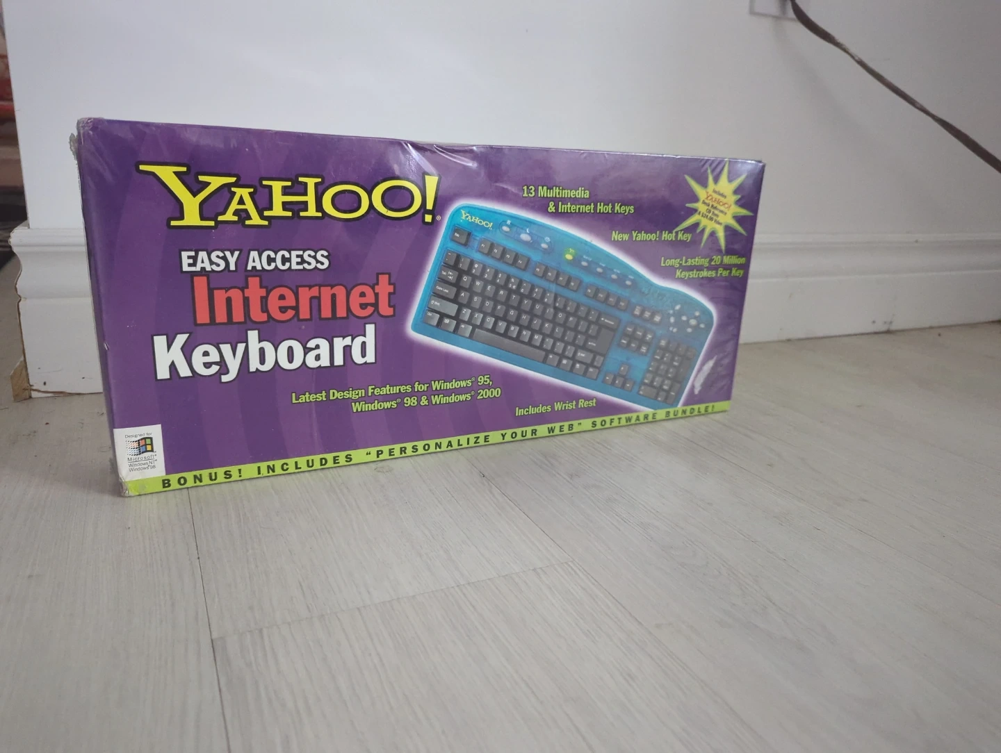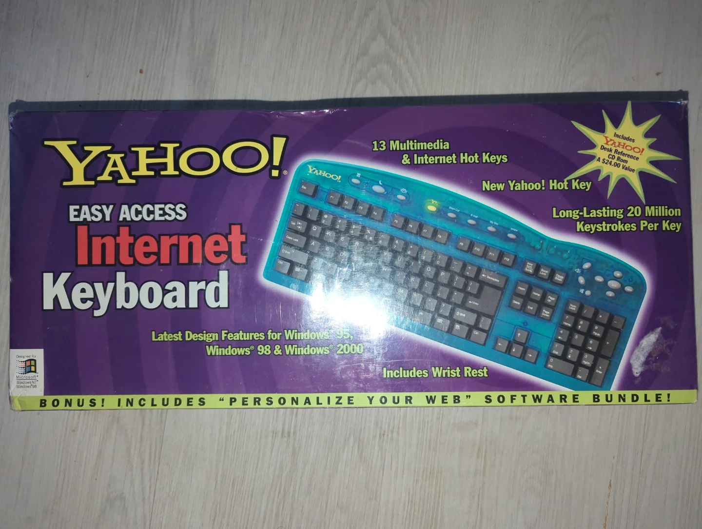Blast from the past! Never opened! Collector's item. This is a Yahoo! Easy Access Internet Keyboard. It features 13 multimedia and internet hot keys. The keyboard includes a wrist rest and comes with a "Personalize Your Web" software bundle.
