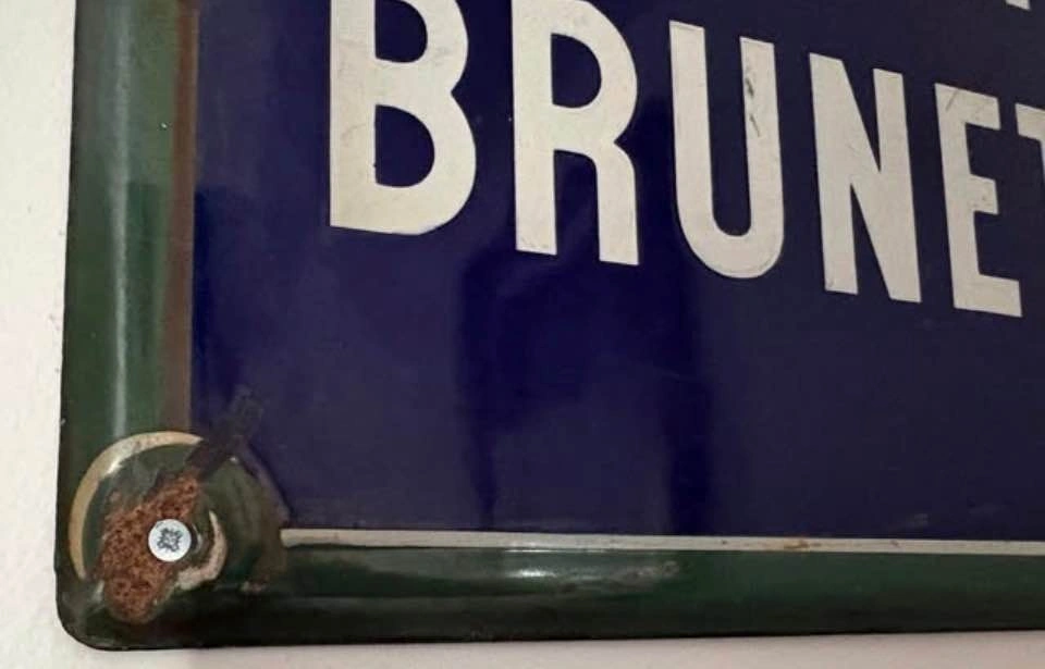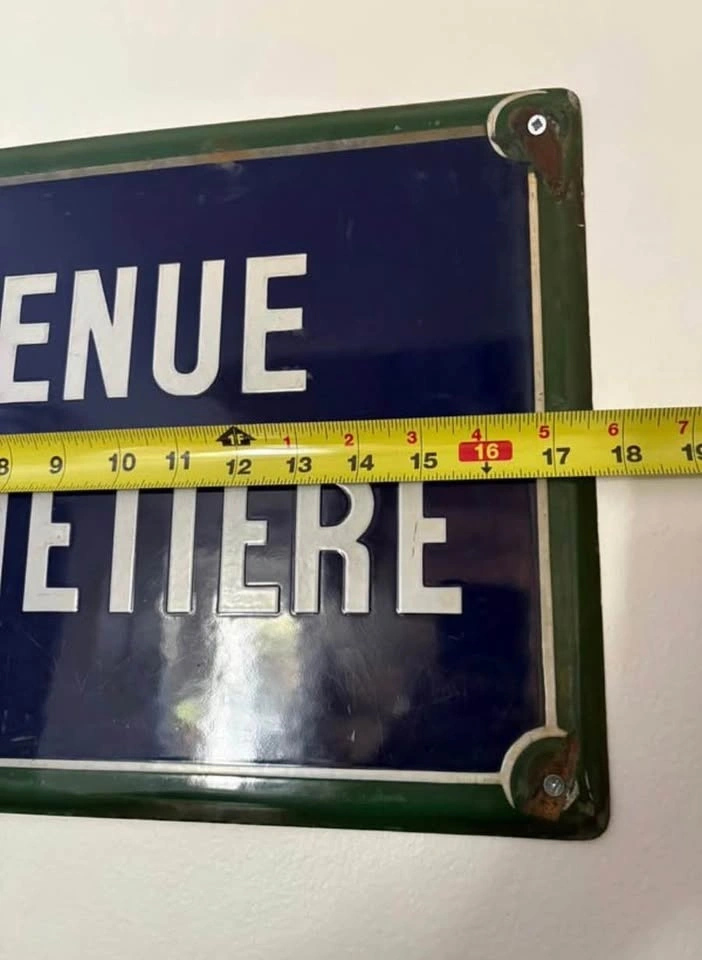 This is an authentic plaque for Avenue Brunetière, a street in the 17th arrondissement of Paris, France, located in the Plaine-de-Monceaux neighborhood. Pickup in Burlington (Pinedale Ave). Price is firm at $150.