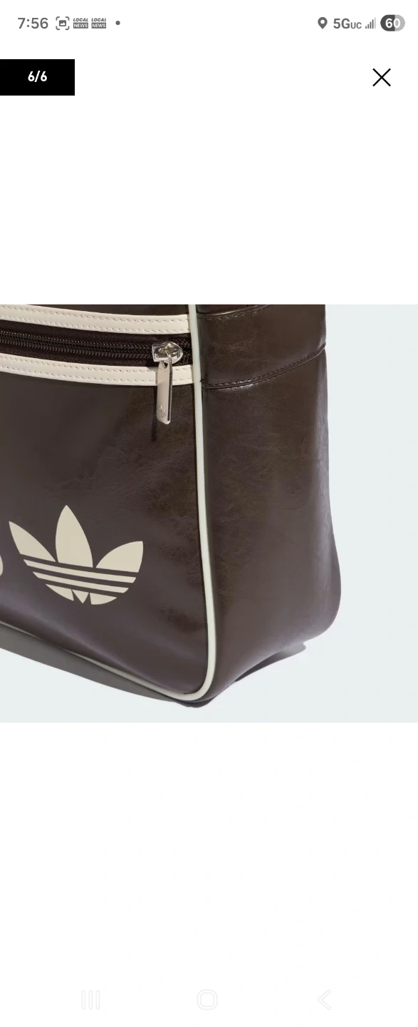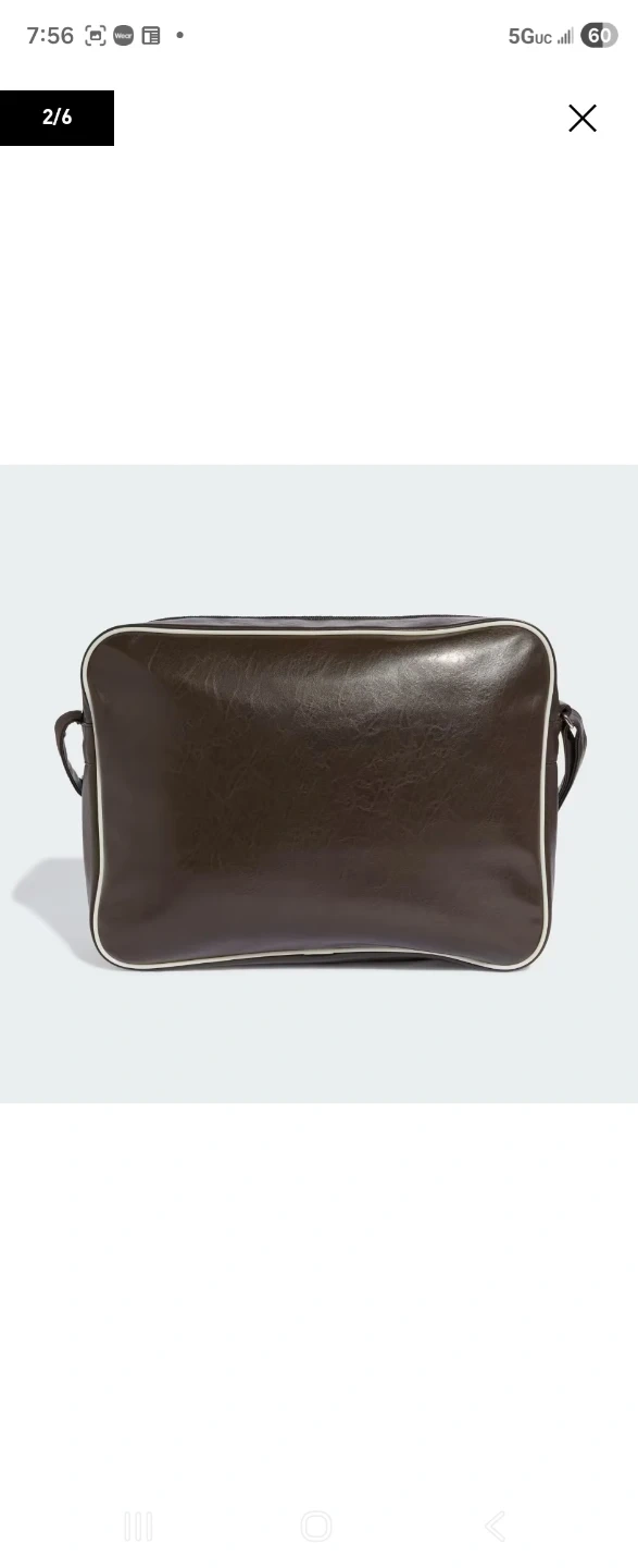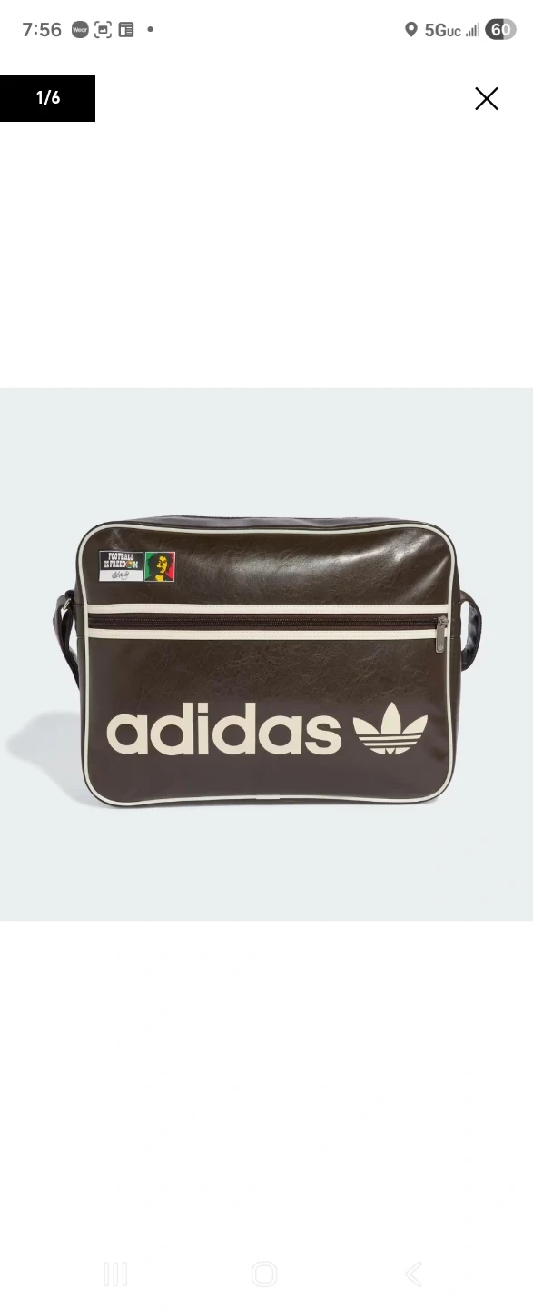 Brown faux leather shoulder bag with a main zipper compartment and adjustable strap. Features the Adidas trefoil logo and a Bob Marley 'Football is Freedom' patch. Back in time in the 60's