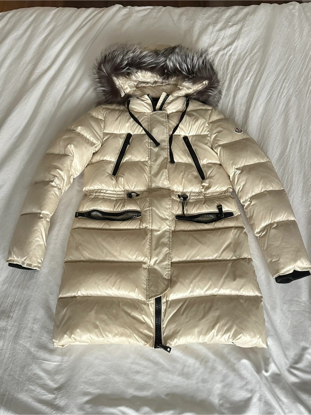 Buy & SellAuthentic Moncler Aphrotiti Long PufferAuthentic Moncler Aphrotiti Long Puffer$800Authentic Moncler cream colour puffer coat. Hardware has some wear but otherwise in great condition! Size 2 / fits XS.ConditionGoodSize2BrandMonclerWHERE TO MEETMeet nearbyView MapSELLERverifiedJudyWillowdale E34342 reviews2 chats·0 favorites·35 viewsSEND CHAT TO SELLERHi Judy! I’m interested in your listing.Hi Judy! I’m interested in your listing.Get the Karrot app to chatSign In to chat