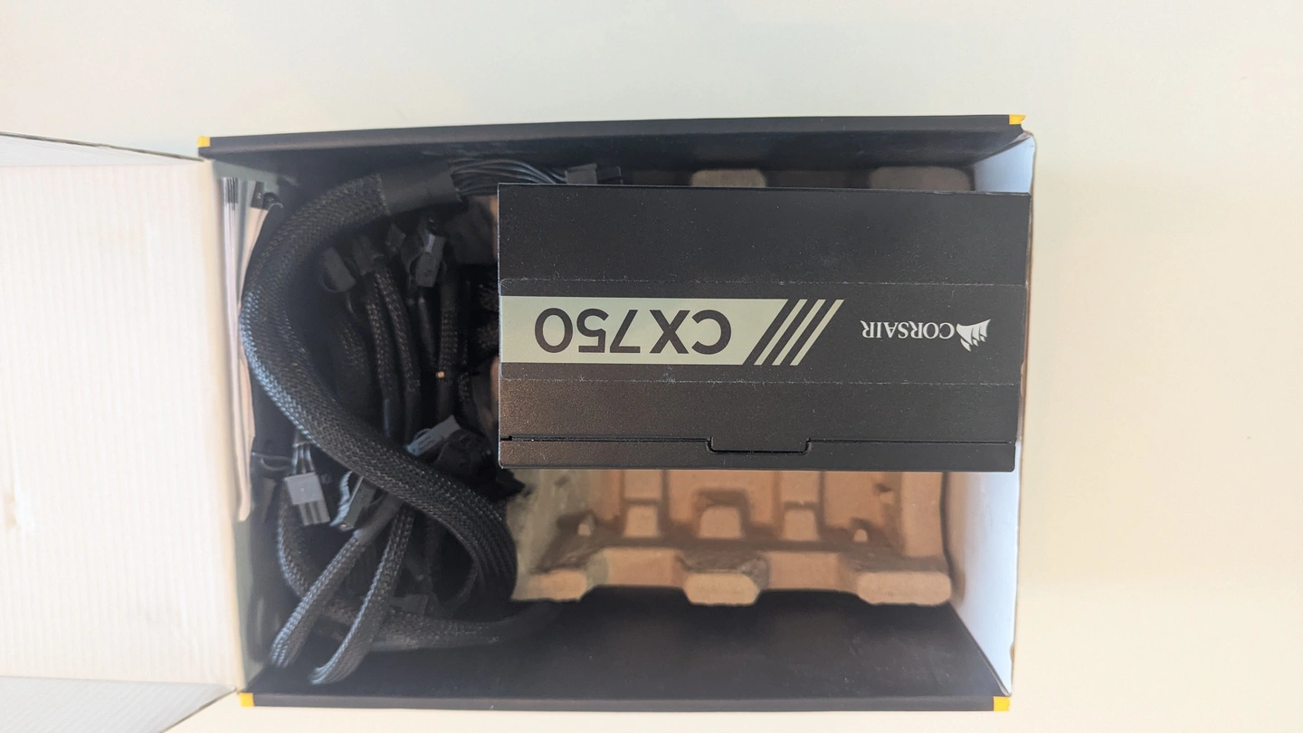 Corsair CX750 750W power supply. Used, in good working condition. 80 Plus Bronze certified, semi-modular design, 750W continuous power output. Reliable PSU for a mid-range gaming build. $53 CAD.