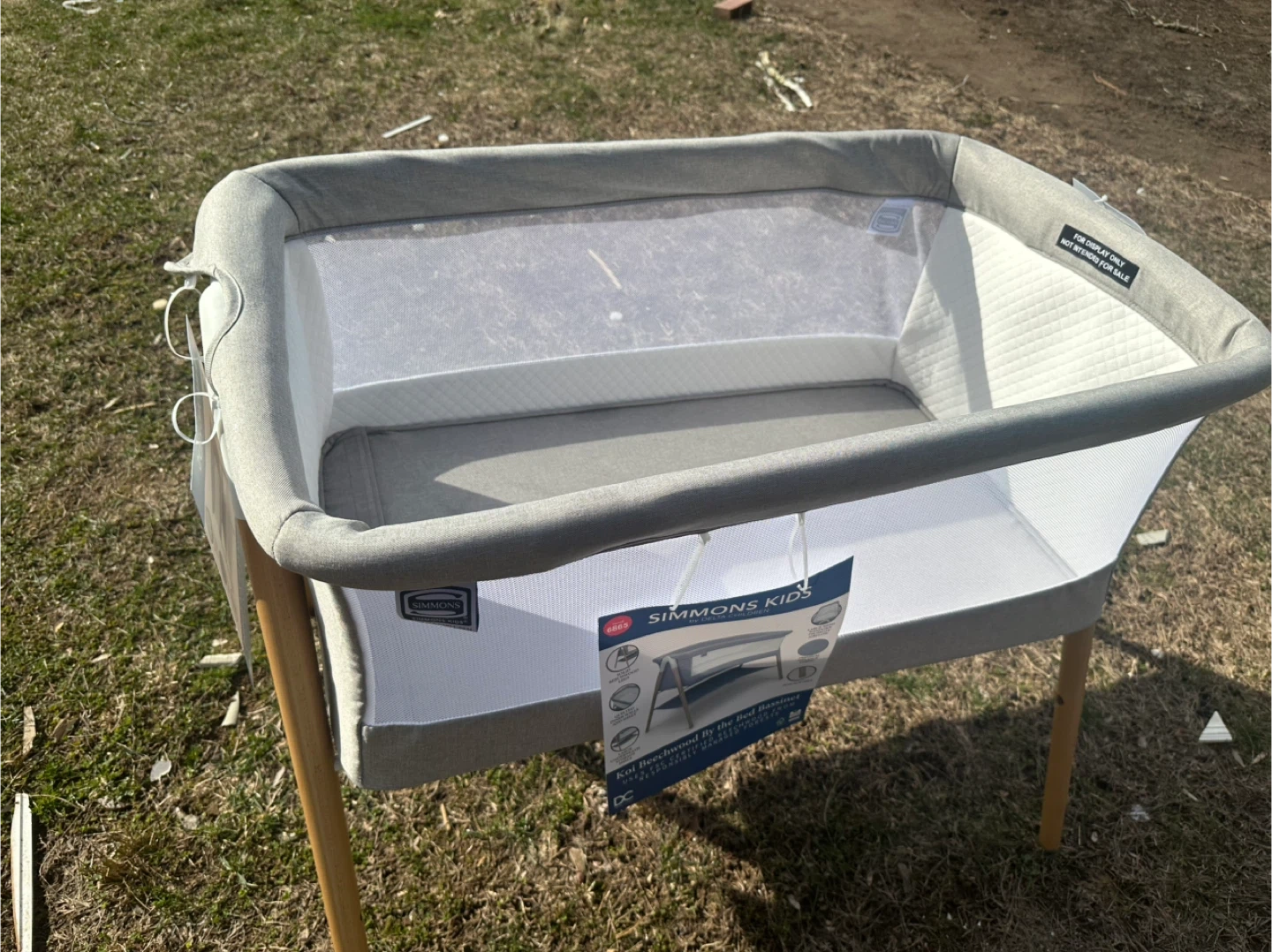 Simmons Kids Koi Bassinet by the Bed. This bassinet features mesh sides for breathability. It's made with a sturdy frame and wooden legs. Perfect for keeping your baby close by!