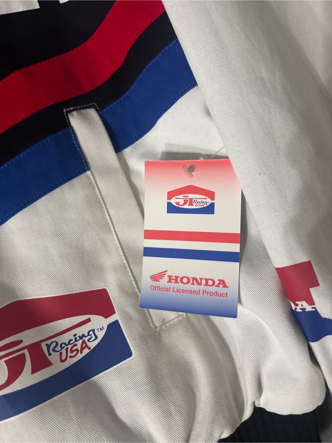 This is a Honda Racing USA jacket is officially licensed. It's a size small and features the iconic Honda wing logo. Perfect for any racing fan!
