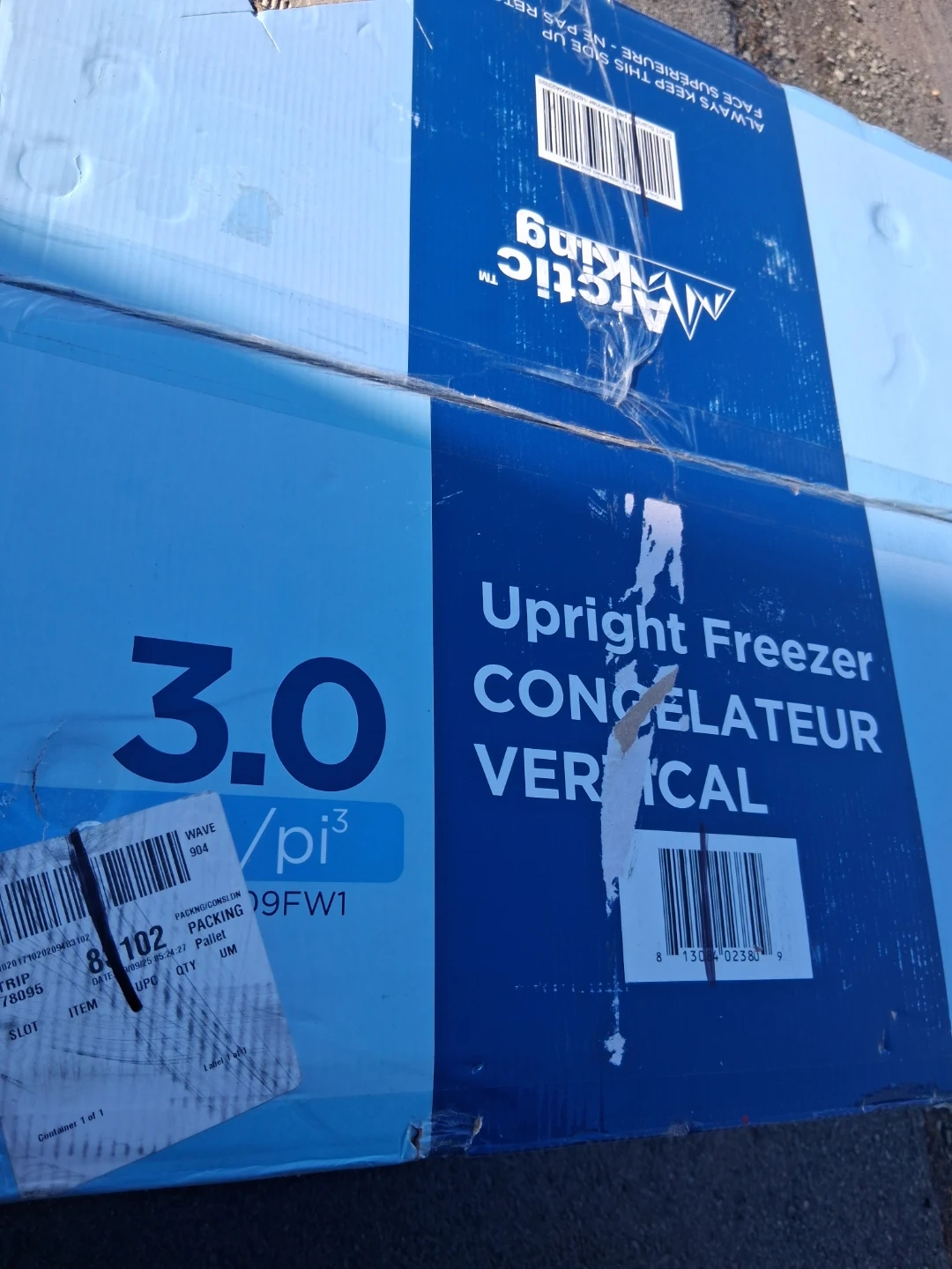 Selling a brand new Arctic King 3.0 cu ft Upright Freezer! It's still in the box and ready to keep your food frozen. This compact freezer is perfect for small spaces and offers convenient storage. Get yours today!